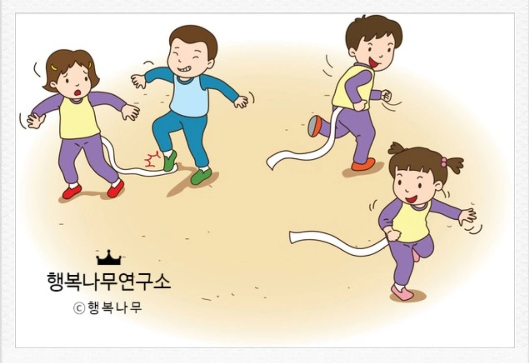 "원래 꼬리 잡기 놀이는 밖에서 뛰어다니면서 하는 놀이잖아."