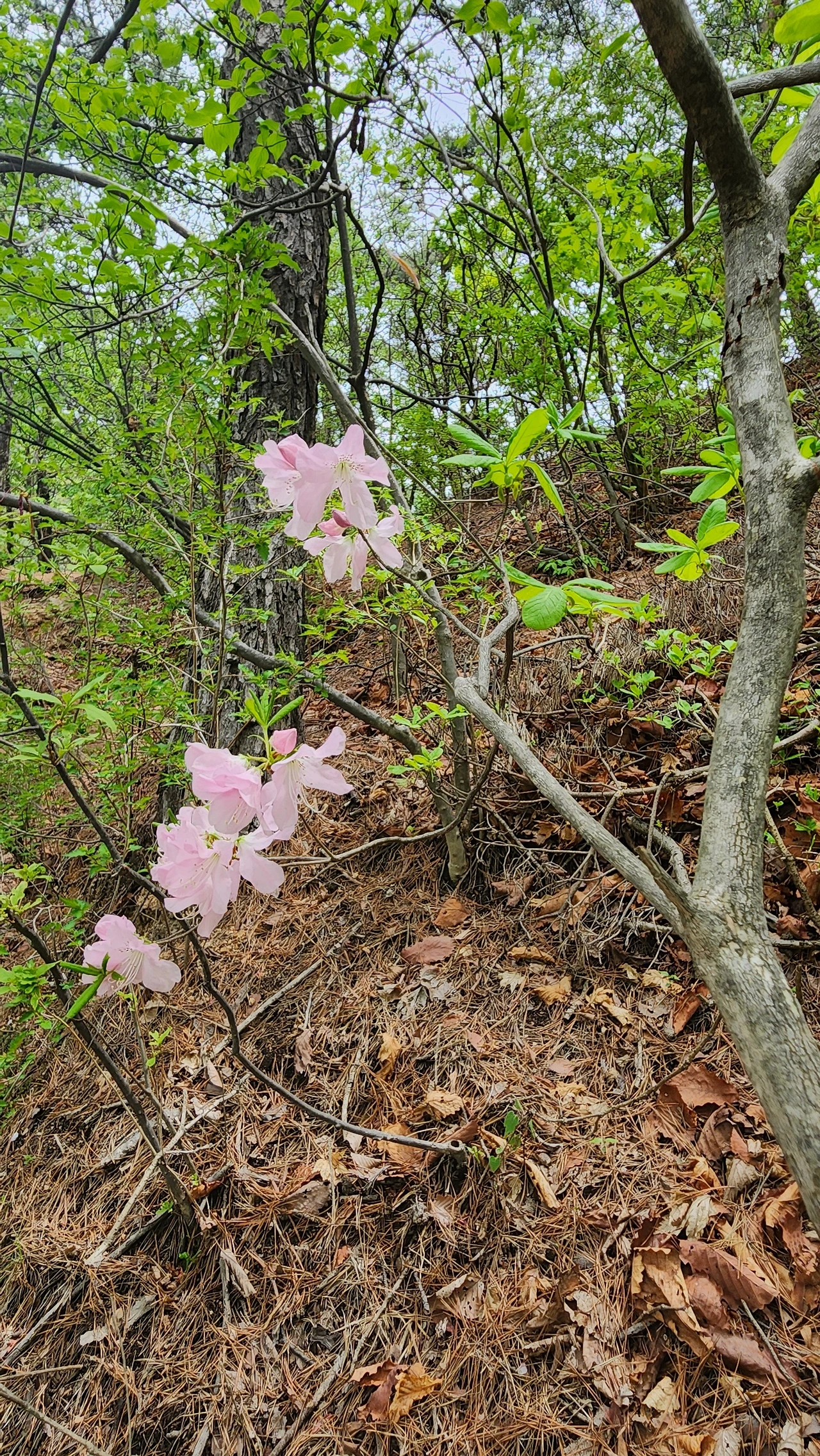 그런데 이 꽃은 피는 시기가 너무나 짧아서 꽃이 피는 시기에 산행을 한주 정도 거르면 놓치기 쉽다. 연달래가 피어나는 걸 보며 진짜 봄이 막바지에 이르렀구나, 싶었다. 나이 들면 모든 게 눈물이라더니, 산자락 듬성듬성이에 피어있는 연달래를 바라보는데 난데없이 코끝이 시큰해지는 건 왜일까?