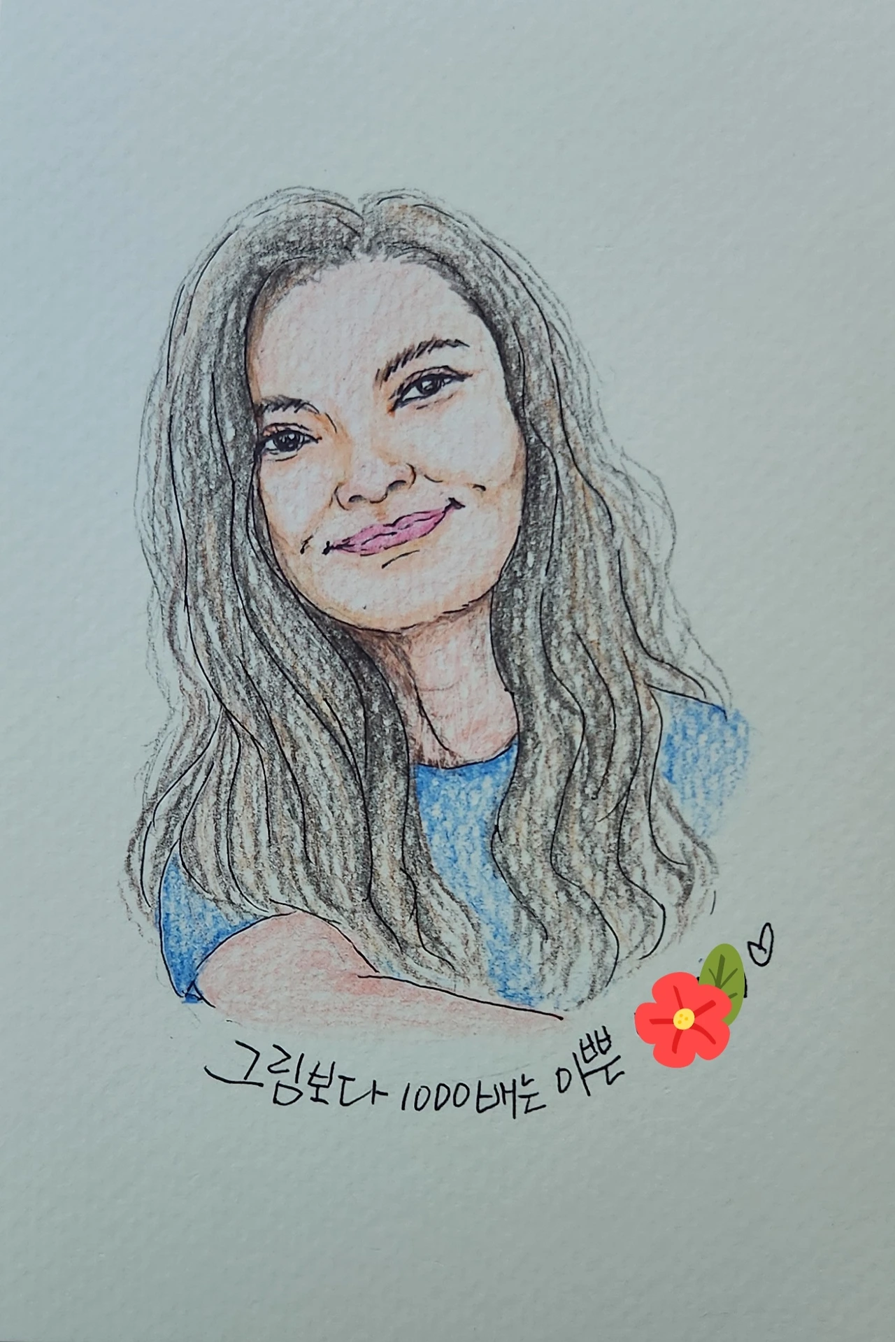 선뜻 올리지 못하고 변명이 길어졌다. 싱크로율이 높진 않았지만 친구들은 좋아해 주었다(달리 뭐라 반응하겠는가마는). 장황한 서설 덕분인지 오히려 너무 예쁘게 그려줬다며 한 친구는 "10년 후 이 모습이면 시니어 모델 하겠다"고도 했다.