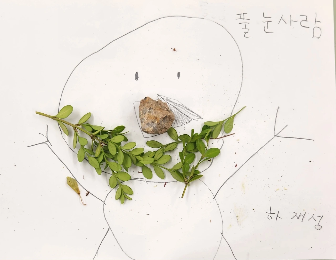 얼굴을 표현하려고 잘린 풀더미로 머리를, 작은 돌멩이로 눈 한쪽을 놓아두었던 민지의 도화지가 발라당 뒤집어졌다. 줄기에 붙은 잎 하나하나를 떼어내 선을 따라가며 차근차근 집 모양을 완성해 나가던 혜화의 도화지도 데굴데굴 굴렀다.
