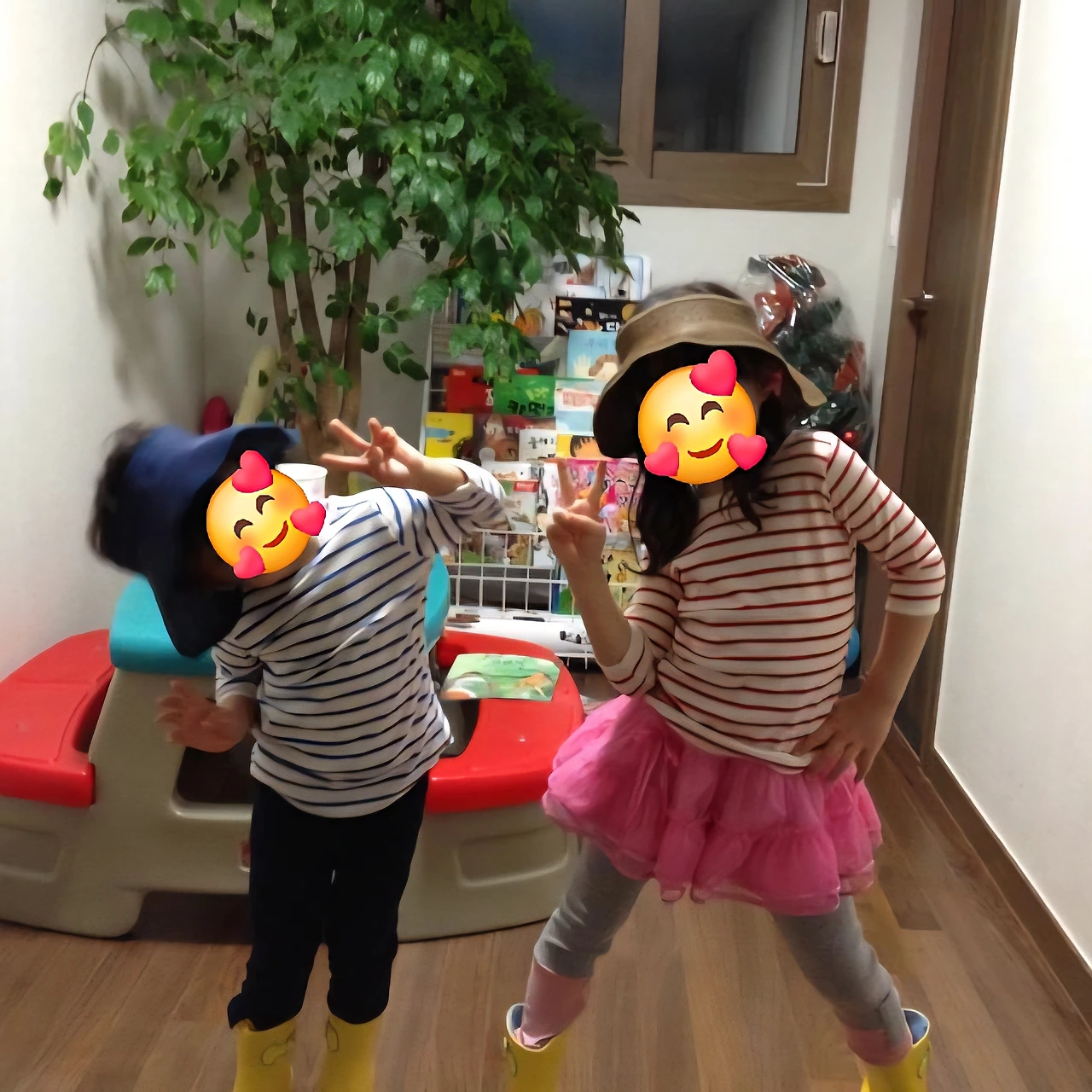 며칠 전, 요구하지도 않았는데 핸드폰 액정에 내 아이들의 어릴 적 사진이 떠올랐다. 특정 앱의 자동화 프로그램이 작동했던 모양이다. 사진을 탑재한 날짜를 확인하니 큰 아이가 7살, 작은 아이가 5살, 아직 큰 아이가 초등학교 입학 전일 때다. 사진 속에서 아이들은 색깔만 다른 상의와 모자, 장화를 차려입고 무대 위 연예인들처럼 다양한 포즈를 취하며 신나 하고 있었다.