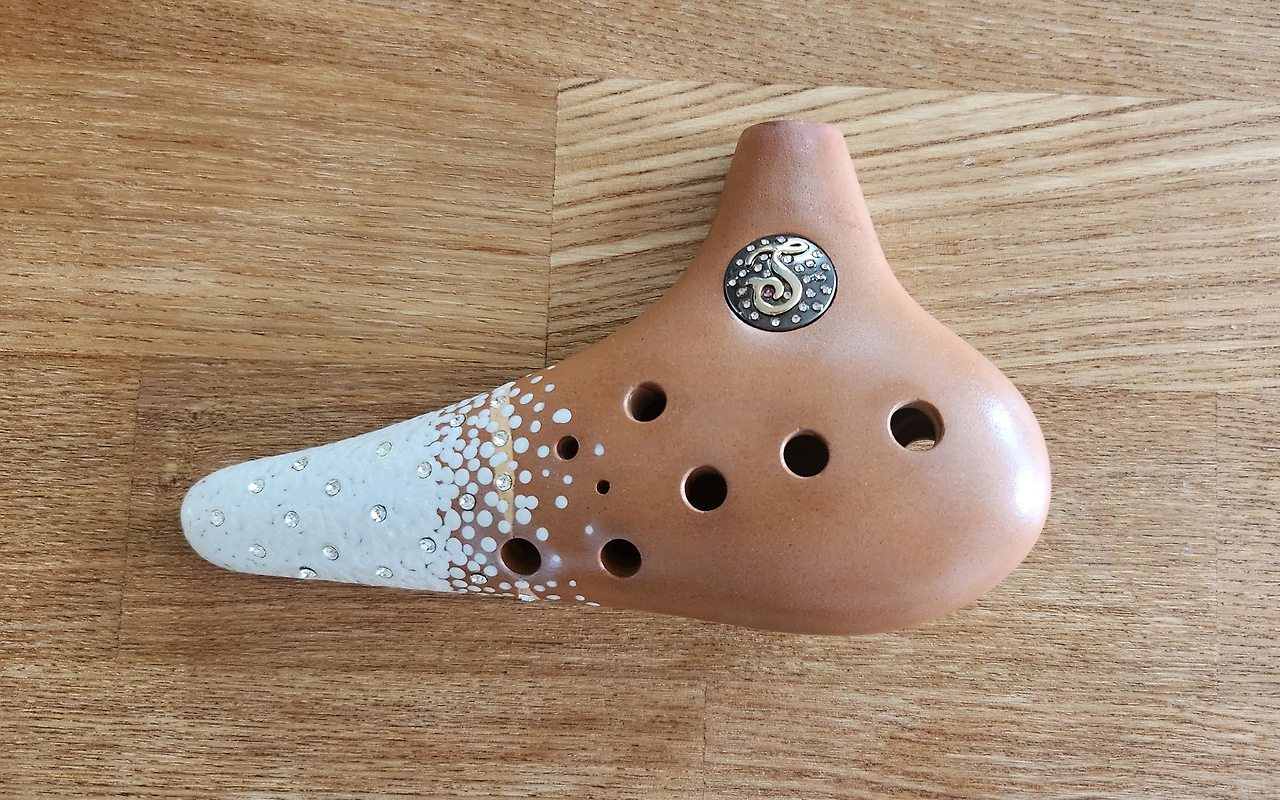 그런 내 마음을 알아채기라도 한 듯, 오카리나는 케이스에서 수줍게 머리를 내밀었어요. 그런데 그 꼬리가 반전이었어요. 다시 돌아온 오카리나는 반짝이는 별들을 수놓은 백옥 드레스를 입은 오월의 신부처럼 찬란했어요. 눈이 부셨어요. 이음새 자국을 따라 촘촘히 박혀 있는 큐빅들이 밤하늘의 별들처럼 영롱했어요.