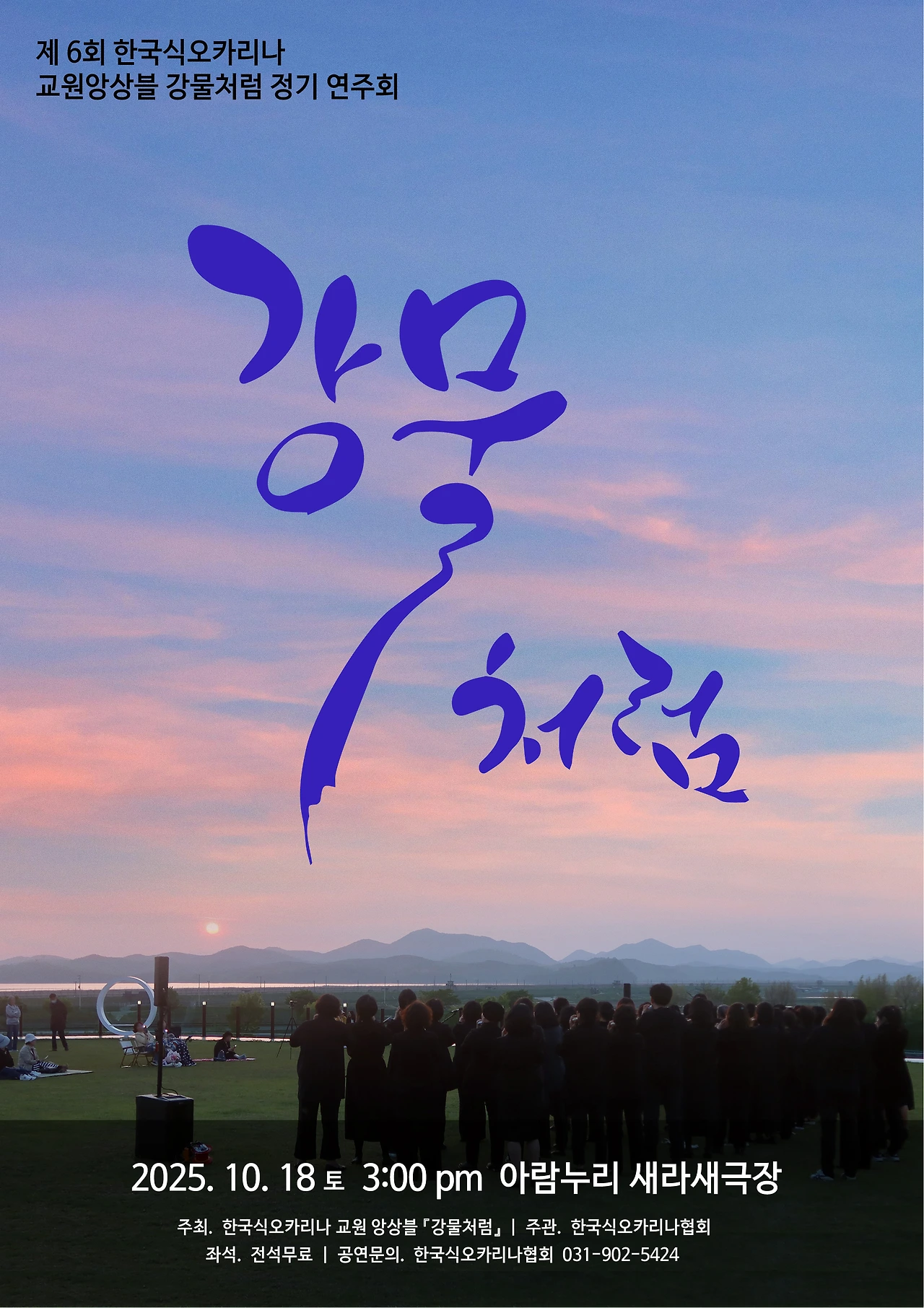 올해 한국식 오카리나 교원앙상블 정기연주회가 10월에 잡혀 있다. 나를 위로하던 곡들이 듣는 이들에게도 위안이 될 수 있도록 모두 열심히 연습 중이다. 혹시 부담스럽지 않은 가을 공연으로 잠시 가을 정취에 취하고 싶은 분이 있다면 관심을 가져 보시면 좋겠다.
