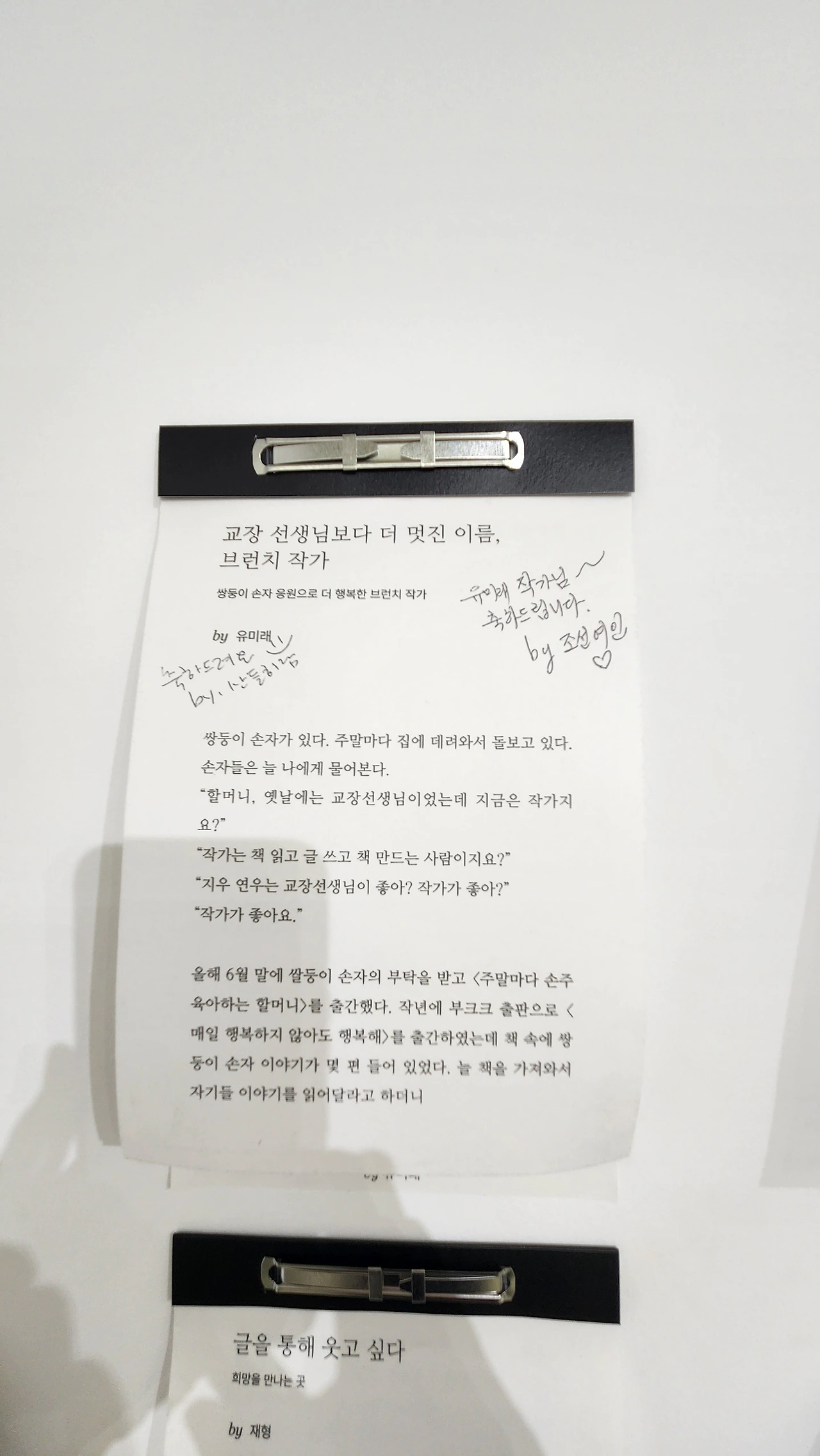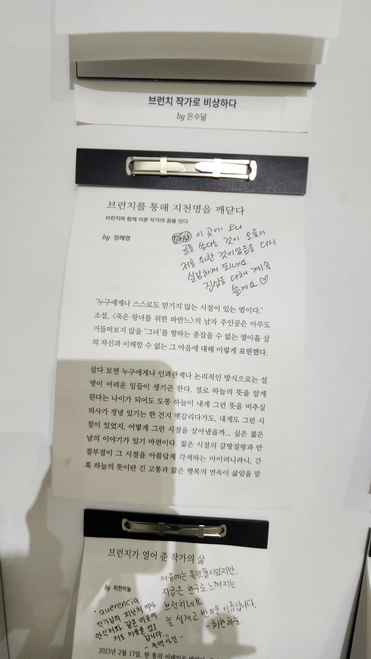 p. s. 브런치 10주년 팝업 전시회, 연주회 바로 다음 날이 마지막 전시일이라 부랴부랴 다녀왔어요. 늦게나마 사진으로 현장 모습 전합니다. 100편의 작가님의 꿈 글 전시에서 이웃 작가님이신 유미래 작가님 글을 보고 너무 반가워서 흔적을 남기고 왔어요(안타깝게도 유미래 작가님은 이 전시회를 모르셨대요.^^;;).