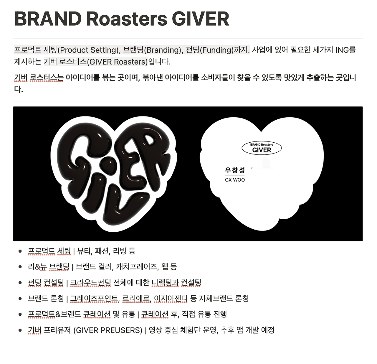 직무: 브랜드 로스터스 기버(GIVER) 대표
