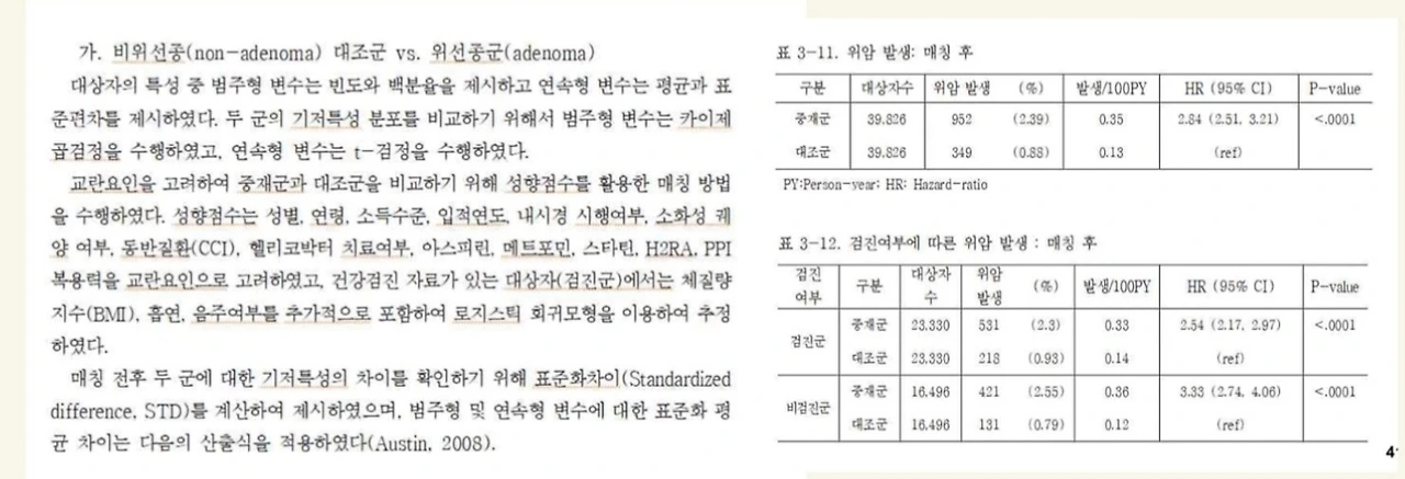 원문 논문 결과표 예시