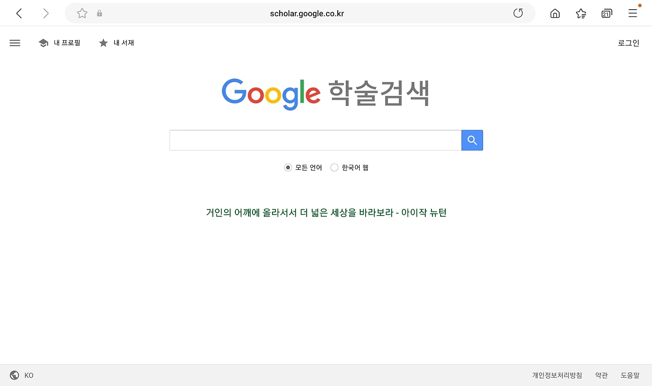 한가지 팁이 있다면 크롬 앱에서 ‘구글 학술검색 버튼’을 다운받아 하라는 대로 설치하면 크롬 주소표시줄 오른쪽에 구글스칼라 단추가 생긴 것을 볼 수 있다. 구글에 평소처럼 검색하고픈 키워드를 검색하고, 해당 단추를 누르면 키워드 관련 논문이 나온다. 당연히 논문명이나 저자 이름을 검색해도 동일하게 논문과 관련된 결과물을 보여준다.