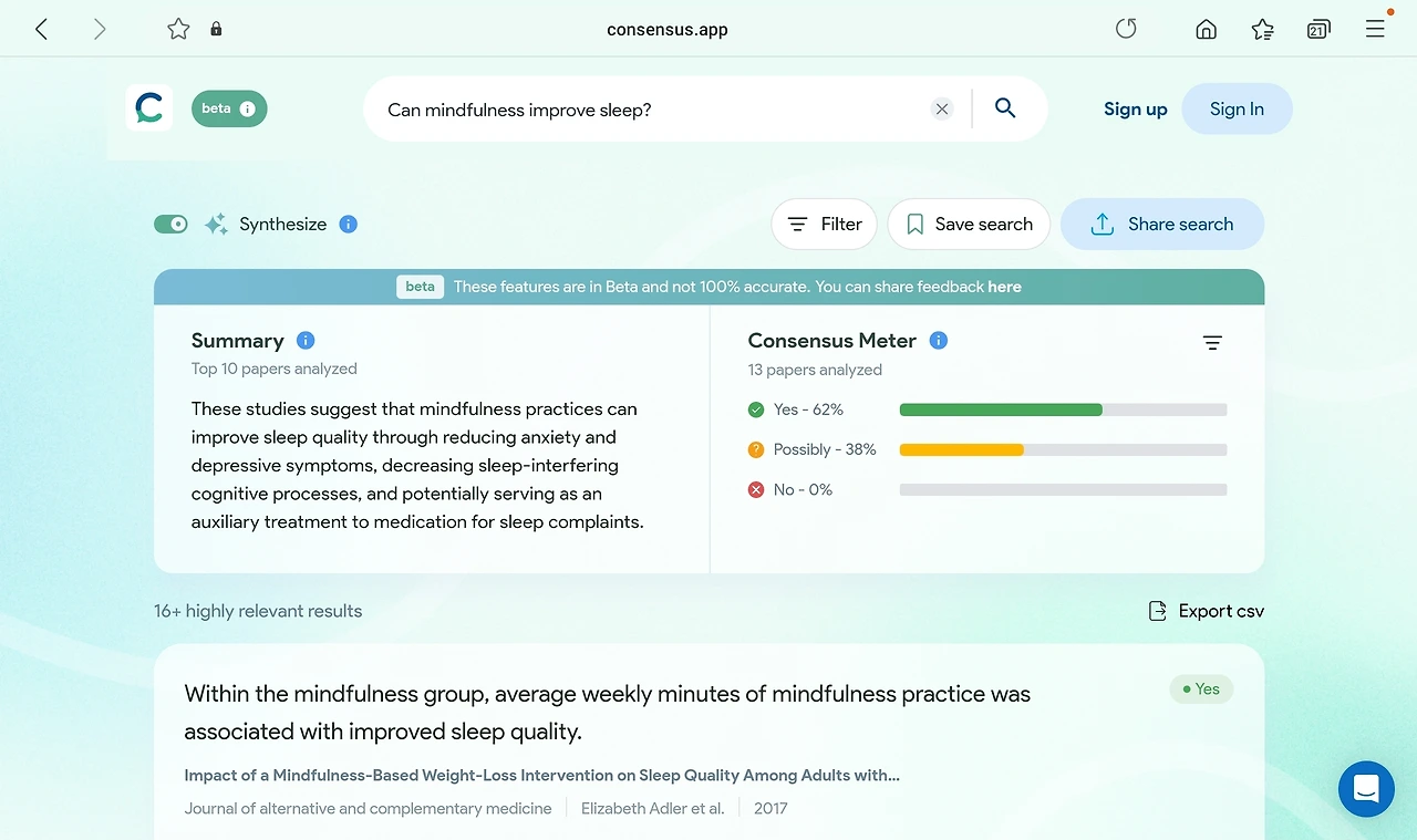 Can mindfulness improve sleep? (마음챙김은 수면을 잘 취할 수 있게 하는가?)와 관련된 논문결과가 나온다