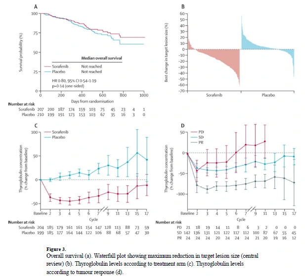 소라페닙을 썼을 때 갑상선 암환자의 치료율은 어떤 범위를 가질 것이다.