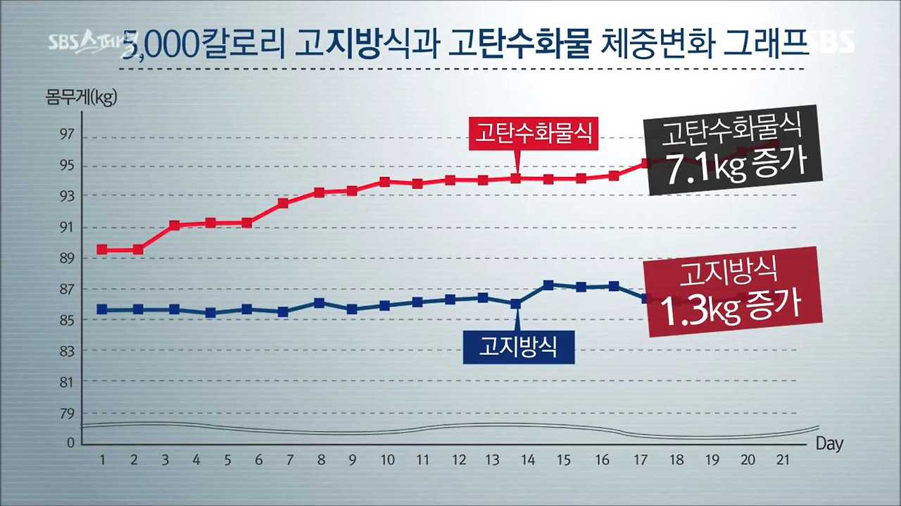 SBS 스페셜의 PD도 쌤과 비슷한 셀프 실험을 했다. 2주는 2,200kcal의 고지방식단을 먹고, 다음 2주도 같은 2,200kcal지만 고탄수화물 식단을 먹어봤다. 결과는 두 식단 모두 4.3kg / 2.6kg을 감량했다. 쌤의 결과와 사뭇 다르다. 쌤과 다르게 고탄수화물 식단에서도 체중을 감량한 이유는 단순하다. 패스트푸드 위주의 쌤과 달리 PD의 식단은 천연재료로 영양사가 직접 조리한 '양질'의 식단이었기 때문이다.