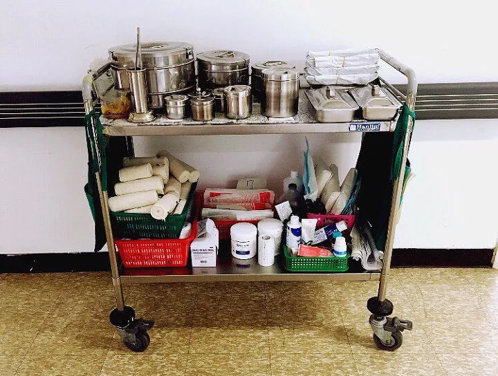 하루에 2-3시간씩 몰고 다니는 드레싱카. 익숙해지면 더 빨라지겠지 했는데 그게 아니라 그냥 환자가 많은 거였다. 응급실 야간 당직으로 밤을 새거나 수술이 많아 오버타임으로 드레싱을 할 때는 진짜 폐지 줍는 할머니처럼 카에 몸을 의지해서 밀고 다닌다.