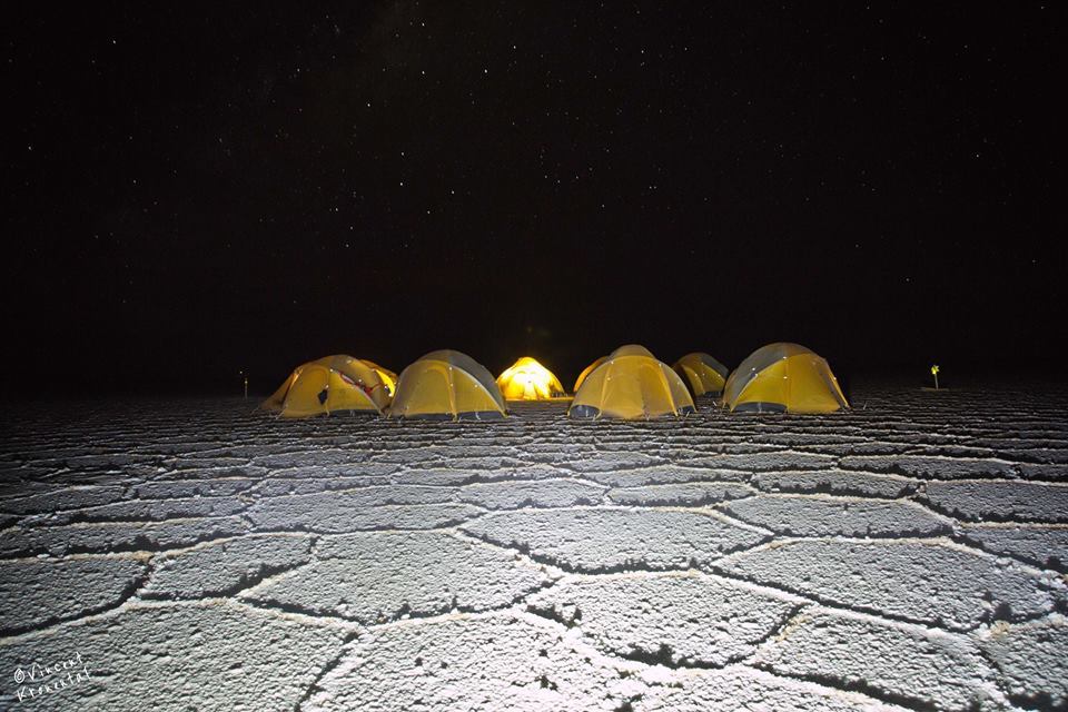 하루도 거르지 않고 타는 햇살을 머리에 인 채 달렸다. 살인적인 자외선은 금세 눈을 멀게 할 만큼 강렬했다. 단 몇 초도 고글을 벗고 버틸 수 없었다. 끝이 보이지 않는 소금호수, 원근감을 상실한 우유니사막은 시간이 멈춘 듯 달리고 달려도 매 그 자리였다. 그래서 선수들은 지독히 외로웠나 보다. 물고기의 섬 Isla del pescado으로도 불리는 잉카와시 섬을 지나 사막 한가운데서 5일째 비박을 맞았다. 밤은 선수들에게 가혹했다. 새벽 4시, 기온이 영하 18도까지 곤두박질쳤다. 진저리 나게 불어대던 바람은 모두 어디로 갔는지 우유니사막은 너무 고요했다. 대신 바람이 떠난 그 자리에는 소리 없는 냉기가 차지했다.