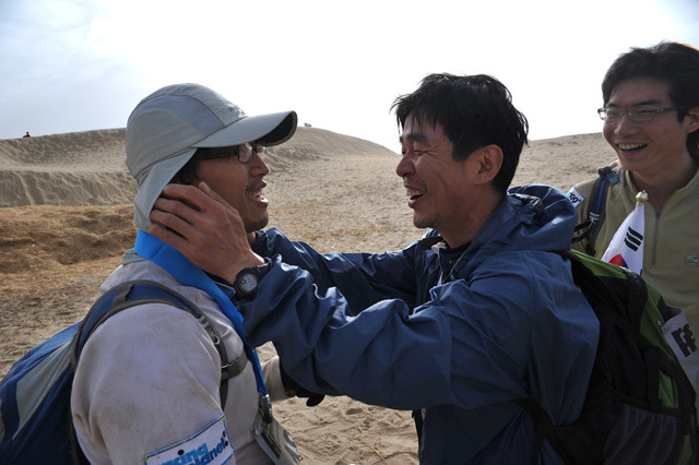 다시 맞은 사막의 밤. 또다시 근원을 알 수 없는 모래폭풍이 선수들을 집어삼킬 기세로 휘몰아쳤다. 전날 불어댄 바람과는 비교할 바 아니었다. 몸을 웅크린 채 바닥에 주저앉았다. 푯대가 순식간에 뽑혀 날아갔다. 터진 물집이 양말 속에서 질컥거렸다. 밤 1시를 훌쩍 넘겼다. 눈알에 핏발을 세우며 내 안의 공포를 집어삼켰다. 자칫 주로를 잃으면 광활한 사막 한가운데 미아가 될 수도 있기 때문이었다. 마지막 제7구간 15km를 남겨놓고 5명의 선수가 레이스를 포기했다. 지치면 지고 미치면 이긴다. 레이스 끝자락에서 손을 맞잡은 싱가포르 선수 맹포 Meng Poh와 미친 듯이 오른쪽 능선을 치고 올랐다. 경계 위에 선 맹포가 내 어깨를 흔들며 흥분된 어조로 소리쳤다. “저길 봐, 캠프가 보인다!”