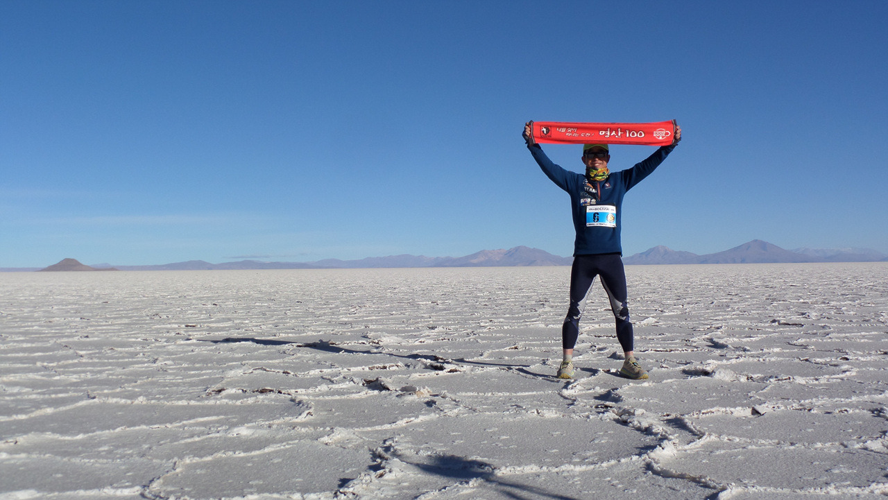나보스키가 뉴욕 공항을 빠져나올 때 하얀 눈발이 그를 환영했지만, 나는 다음 날 새벽 2시 30분, 4100m에 있는 라파즈 공항에서 몇 발작 떼기도 전에 고산병을 맞았다. 그리고 곧바로 남쪽으로 550km 떨어진 우유니로 이동해 5박 6일 동안 4천m가 넘는 알티플라노 고원지대와 우유니 사막 171km을 달렸다. 토한 음식을 다시 씹어 삼키며 달렸다. 태양의 열기와 혹한과 싸우며 달렸다. 달릴수록 물집이 터지고 피부가 익어갔다. 지구의 끝, 경계에 서는 것이 두려웠다면 나는 우유니에 오지 않았을 것이다.