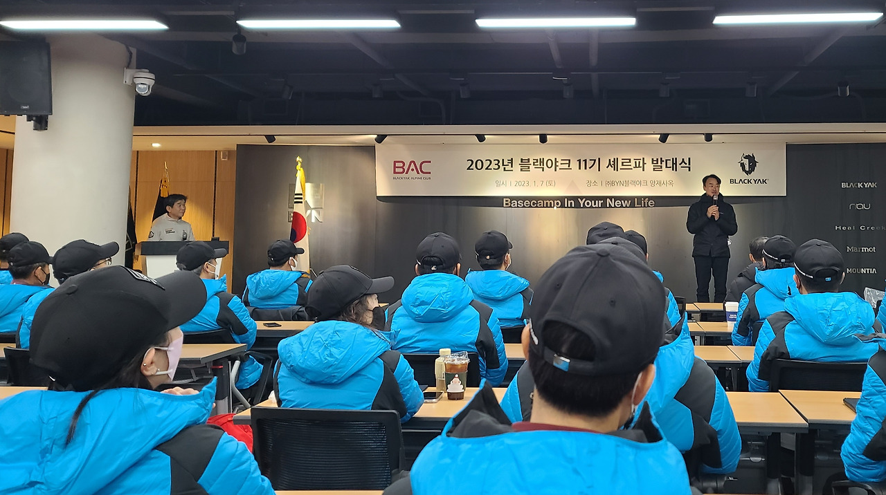 지난 토욜(1/7) 2023년도 제11기 블랙야크 셰르파 발대식이 있었어요. ‘셰르파’는 네팔에서 고산등반 가이드이자 등반가들의 동료입니다. ‘앞서가지만 혼자 가지 않는다.’, ‘등반은 먼저 하지만 먼저 정상에 오르지 않는다.’ 그리고 ‘혼자 돌아오지 않는다.’는 것을 신념으로 삼고 있지요. ‘블랙야크 셰르파’는 등산을 비롯한 아웃도어의 리더이자 조언자입니다.