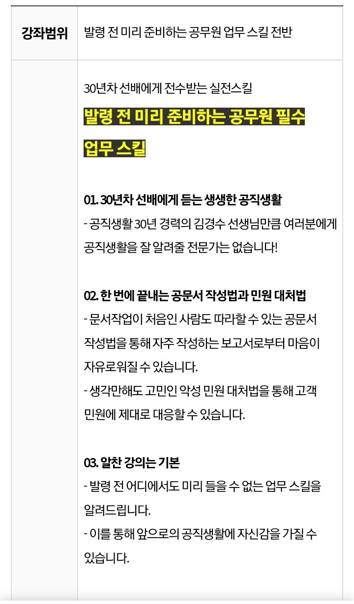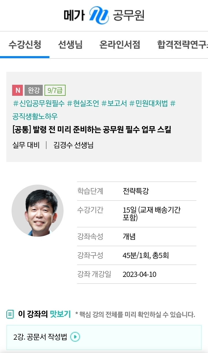 얼마 전 노량진 메가공무원에서... 임용을 앞둔 예비 공무원 대상, 발령 전 미리 알아두면 좋을 ‘필수 업무스킬 특강(5H)’을 진행했는데요.그 강의 내용이 메가스터디의 ‘온라인강좌 플랫폼’에 등록되었어요.