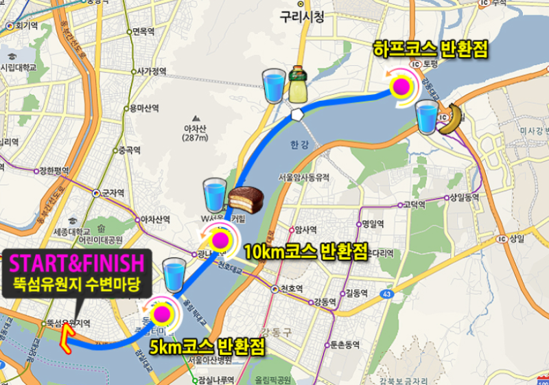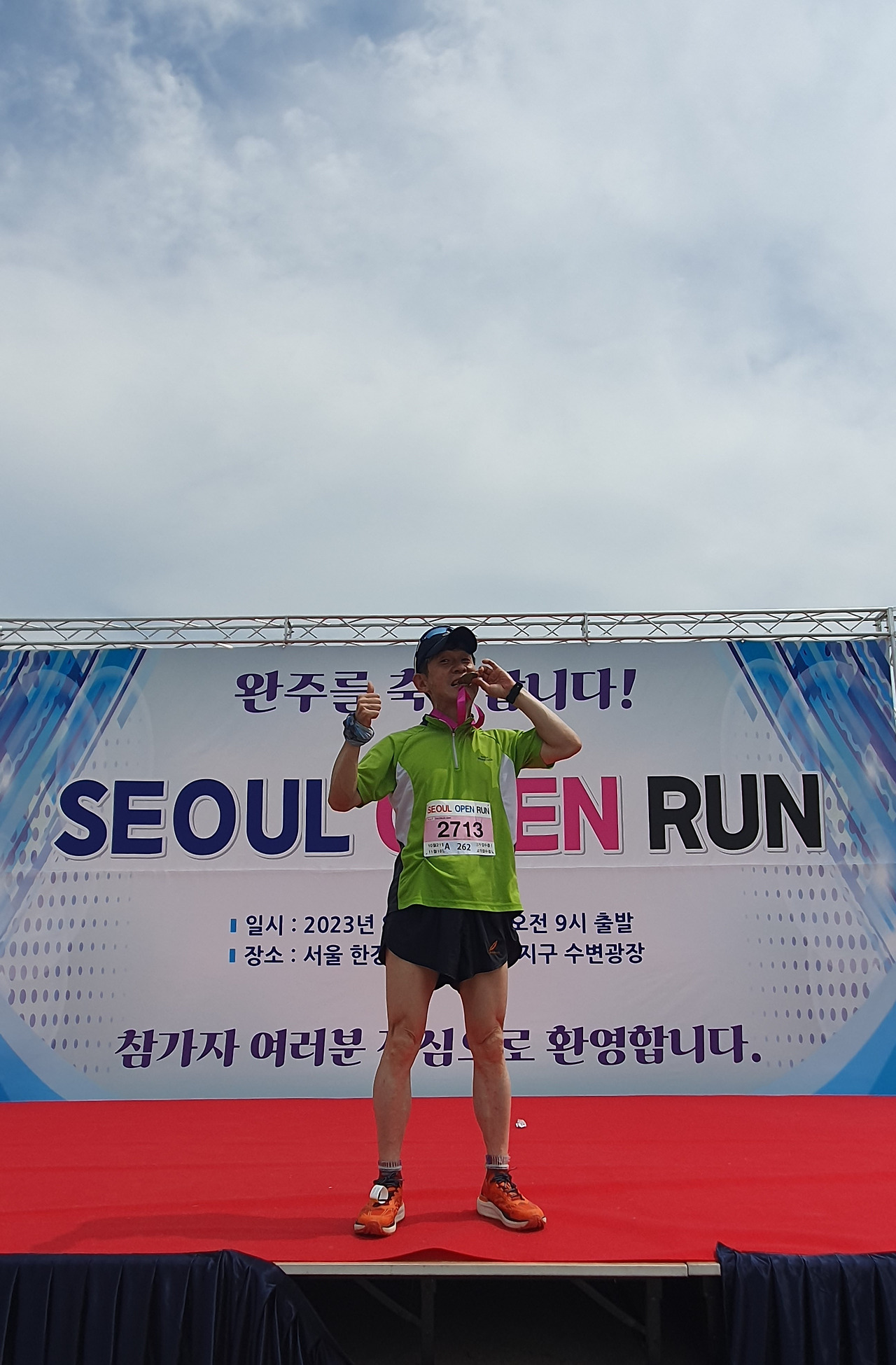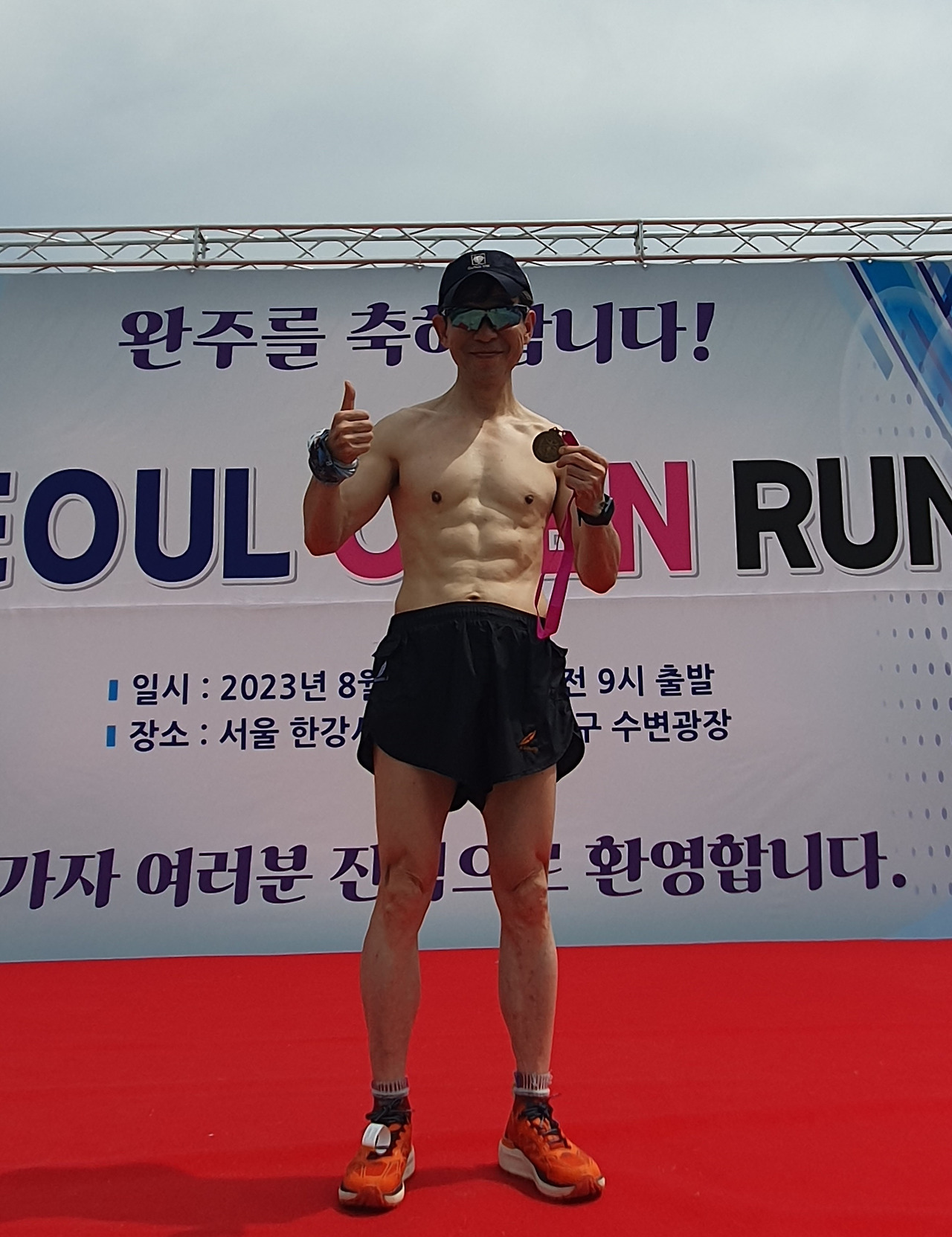 우와~ 혈기 넘치는 마니아들로 발 디딜 틈이 없다. 어느 마라톤대회나 다 그렇다. 한강 변을 달릴 때도 몇 번을 망설였다. ‘여기서 멈추고 되돌아갈까?’ 썩어도 준치다. 반환점 찍고 피니쉬라인에 들어서니 다시 기분~ up! 무쟈게 쓴 보약 한 첩 먹은 느낌이다.