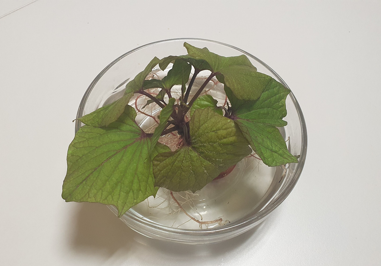 고구마 꽁다리, 주인이 연구실을 비우든 말든 녀석은 쑥쑥 잘도 자라고 있다. 더 많이 사랑을 주지 못하는 게 미안할 딸흠이다. ‘개구쟁이라도 좋다. 튼튼하게만 자라다오.’ 어린시절 TV에서 봤던 광고 카피가 생각난다. ㅎㅎ; 진짜 부디 오래 이 녹음을 지켜주고 싶다.