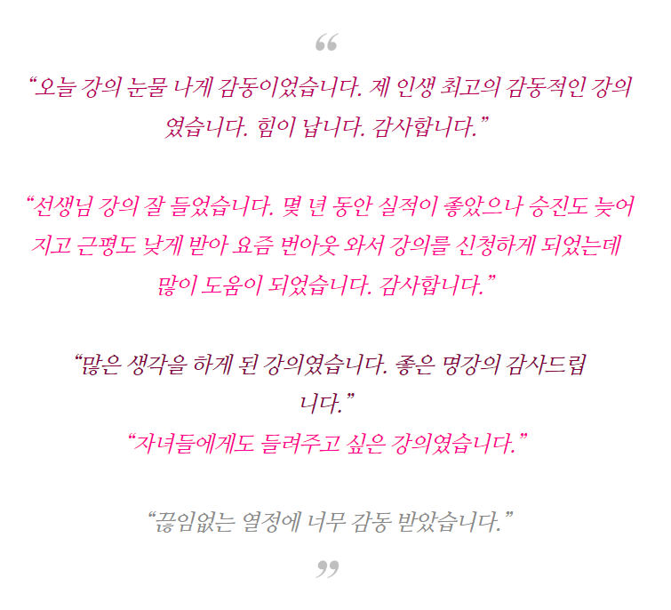 뉴노멀시대, 4차산업혁명 시대, 포스트 코로나 시대... 혼돈의 시대, 예측 불허의 시대를 살아가는 요즘이다. 대자연에서 얻은 희로애락은 우리 일상과 별반 다르지 않다. 2023년~ 대구시교육연수원, 화성시청, 우리글진흥원, 세종연구소(세종국가전략연수과정), 광주시공무원교육원(중견간부리더과정), 춘천시도시재생지원센터, 고양시청, 중부대학교, 충청북도자치연수원, 용인시청(핵심리더과정), 명지대학교 등으로 이어진 릴레이 특강~~ 사막에서 길을 묻다, 사막이 내게 준 삶의 지혜 / 도전과 열정의 인생, 내 인생의 사막을 달리다 특강이... 강원도 태백소방서(12/13)에서 마무리됐다.
