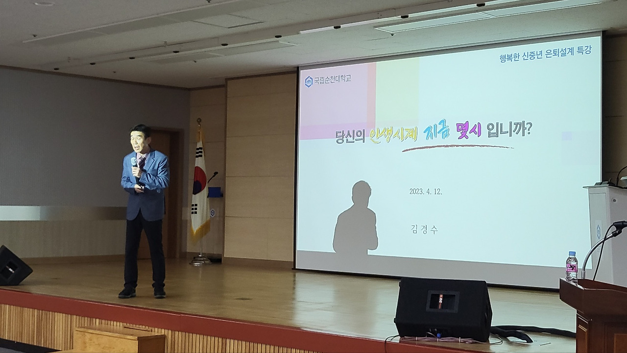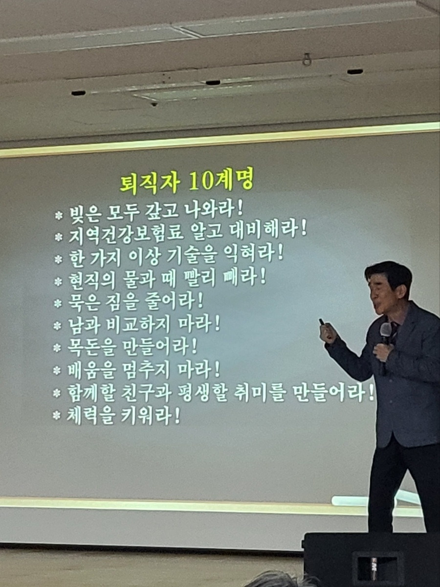 지난해~ 순천대학교, 교육부 중앙교육연수원(2회), 제주도인재개발원, 해양수산인재개발원, 대구시공무원교육원, 충북자치연수원, 중랑구청, 전라북도교육청(3회) 등에서 퇴직 앞둔 직원 대상 특강을 했다. ‘당신의 인생시계, 지금 몇 시입니까?’ 준비 없는 퇴직은 축복이 아닌 재앙이다. 준비 없이 퇴직한 대가가 얼마나 가혹하고 처절했던지. 하지만 연봉 1억 강사로, 트레일러닝 지도자로, 작가로, 칼럼니스트로, 유튜브 크리에이터로~ 코로나19와 겹친 퇴직 후의 삶, 그 치열했던 극복 과정을, 자칫 재앙이 될 뻔했던 내 2막 인생을 감사&축복의 기회로 만든 노하우를 예비 은퇴자들과 공유했다.