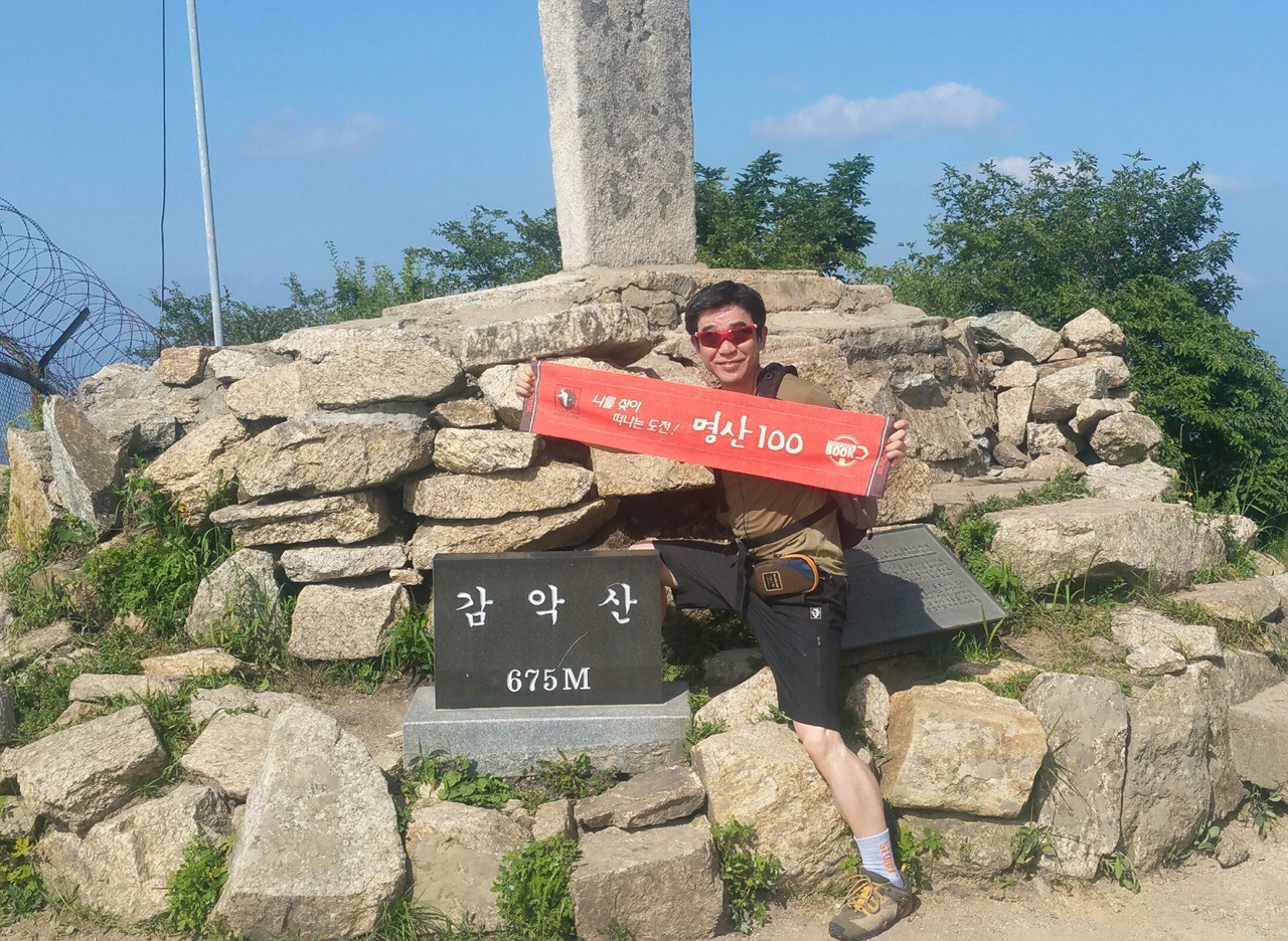 요즘 주말은 산행에 푹 빠졌다. 그렇다고 기왕 시작한 국내 명산 100곳의 정상 등반을 서둘러 마치고 싶은 건 아니다. 매번 사막이나 오지 레이스를 앞두고 벼락치기 운동을 하는 내 자신이 싫어서다. 폭염경보가 내려진 지난 7월 첫째 주말, 경기 지역이 37도를 웃도는 열기 속에 파주 감악산으로 향했다. 범륜사 입구를 들머리로 숯 가마터 흔적이 간간이 보이는 급경사의 너덜 지역을 따라 정상까지 단박에 올랐다. 산행 길에 서면 잊었던 과거를 회상하고, 내가 가는 길을 되짚어보는 시간을 가질 수 있어 좋다.