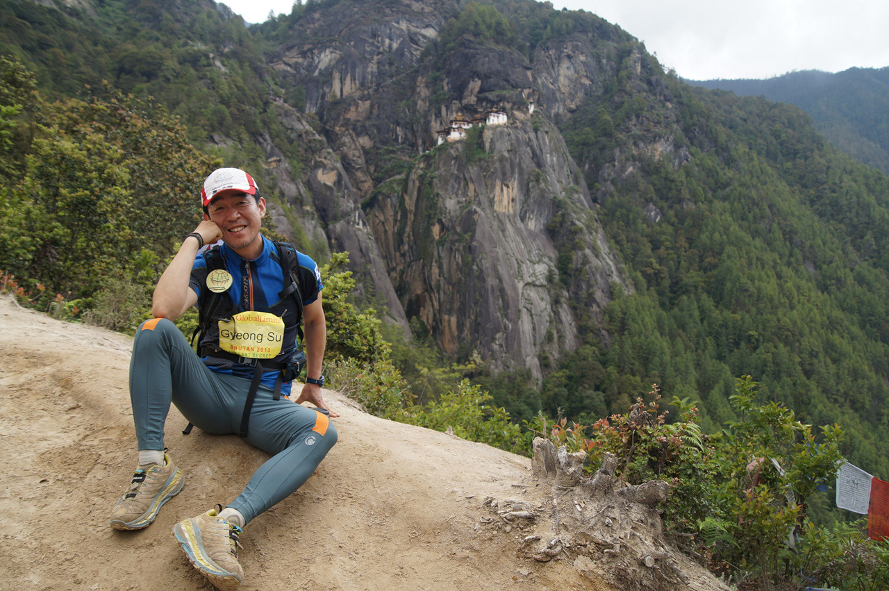 다음 날도 그다음 날에도 절대 고독과 극한의 상황에서 음습한 수풀과 질컥이는 진흙탕 길을 달렸다. 매일 3천 미터 이상을 오르내리며 두통과 구역질로 여러 차례 땅바닥에 머리를 처박을 뻔했지만 결코 포기할 수 없었다. 레이스는 대자연과 겨루는 것이 아니라 의식과 무의식을 경계에서 나를 흔들어 깨우는 채찍질의 연속이었다. 하마터면 영영 못 일어날 뻔했던 악몽에서 깨어났다. 레이스 6일째 날 정오, 짖게 낀 물안개 사이로 해발 3430m 파로 Paro 계곡 정상 언저리의 결승선인 탁상곰파 종(*The Tiger’s Nest Monastery)이 장엄한 모습을 드러냈다.