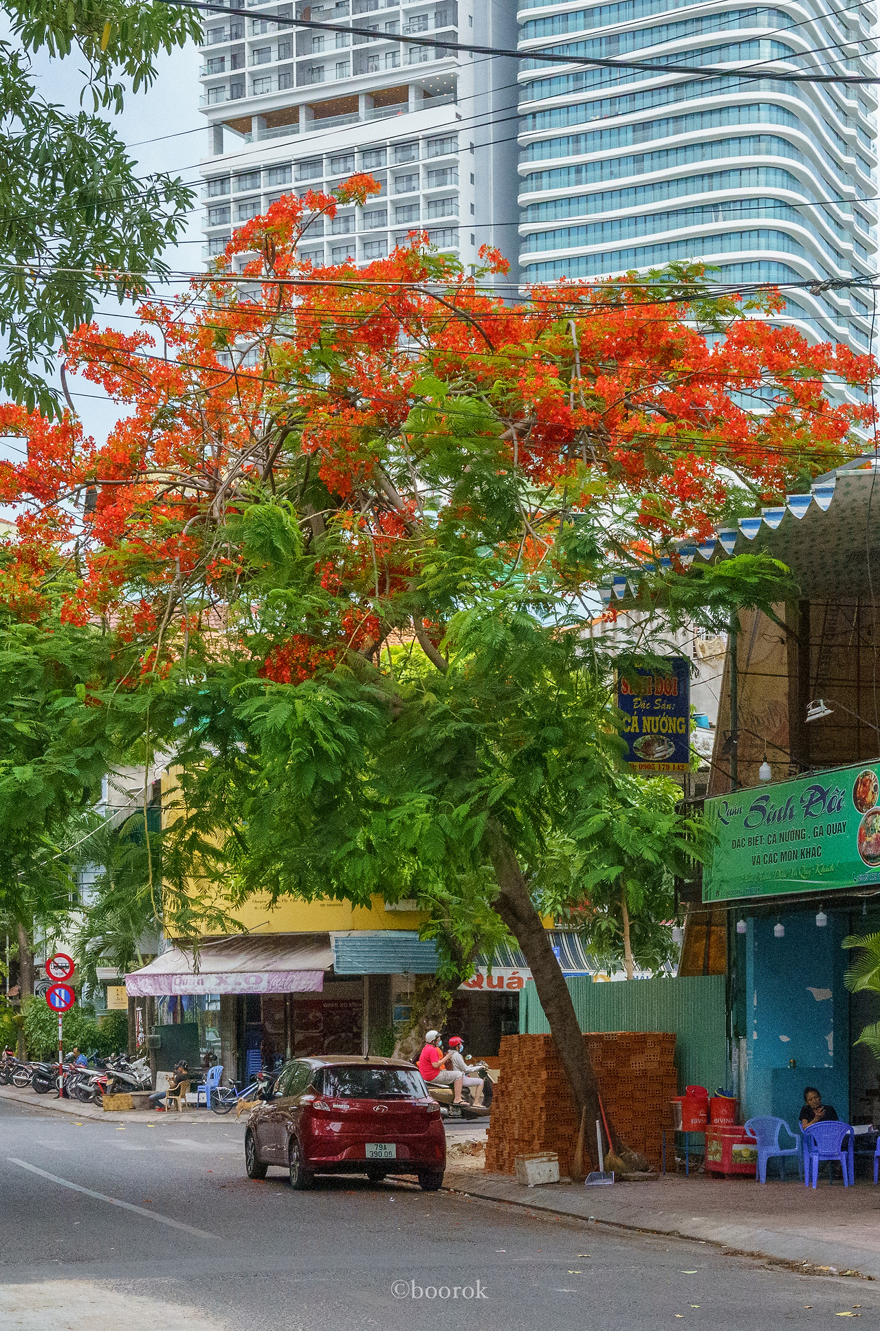 1. 동남아에 와서 가장 좋았고 인상적이었던 점은 온갖 꽃이 핀 가로수가 한가득이었다는 것. 물론 기후 덕에 잘 자라는 것도 있겠지만, 틈만 나면 흉물스럽게 잘라버리는 한국의 가로수와는 너무 대조적으로 자유롭게 자라는 나트랑의 나무들은 거리의 건물들과 조화를 이루어 아름다운 풍경을 만들어냈다. 서울이 왜 삭막했는지 이렇게 깨닫게 된다.