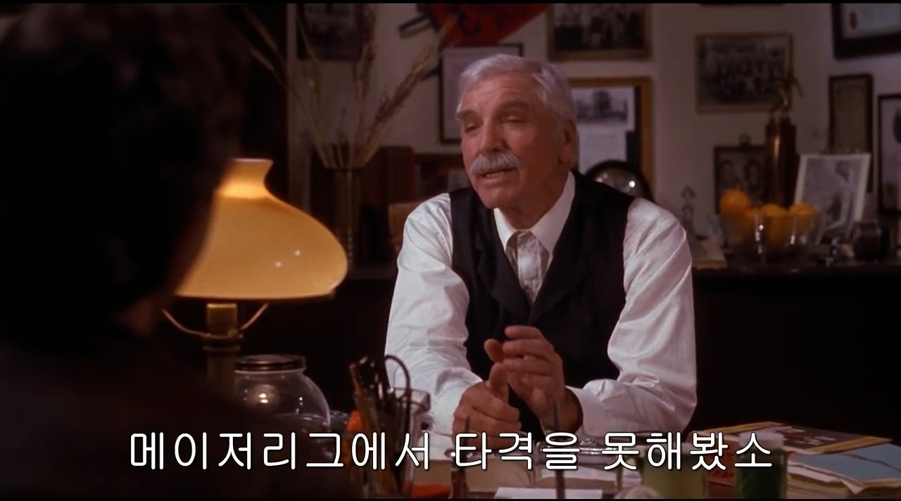 아치볼드 그래햄(Archibald Graham, 배역 : 버트 랭커스터)은 메이저리그에 도전했으나, 한 타석에도 들어서지 못하고, 야구를 그만두었다. (1972년에 이미 사망한) 나이 든 그는, 레이에게 이렇게 말한다.