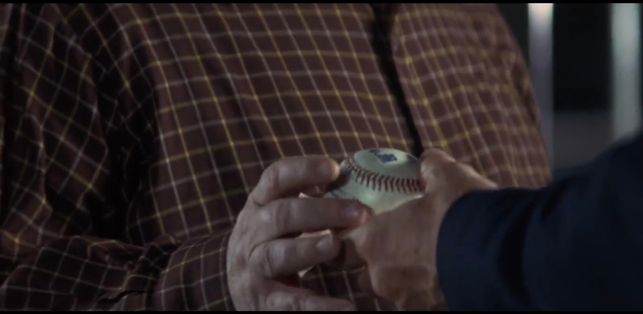 그리고는, 당일 경기에서 삼진을 잡았던 그 공을 주머니에서 꺼내, 아버지에게 건네며 말한다.