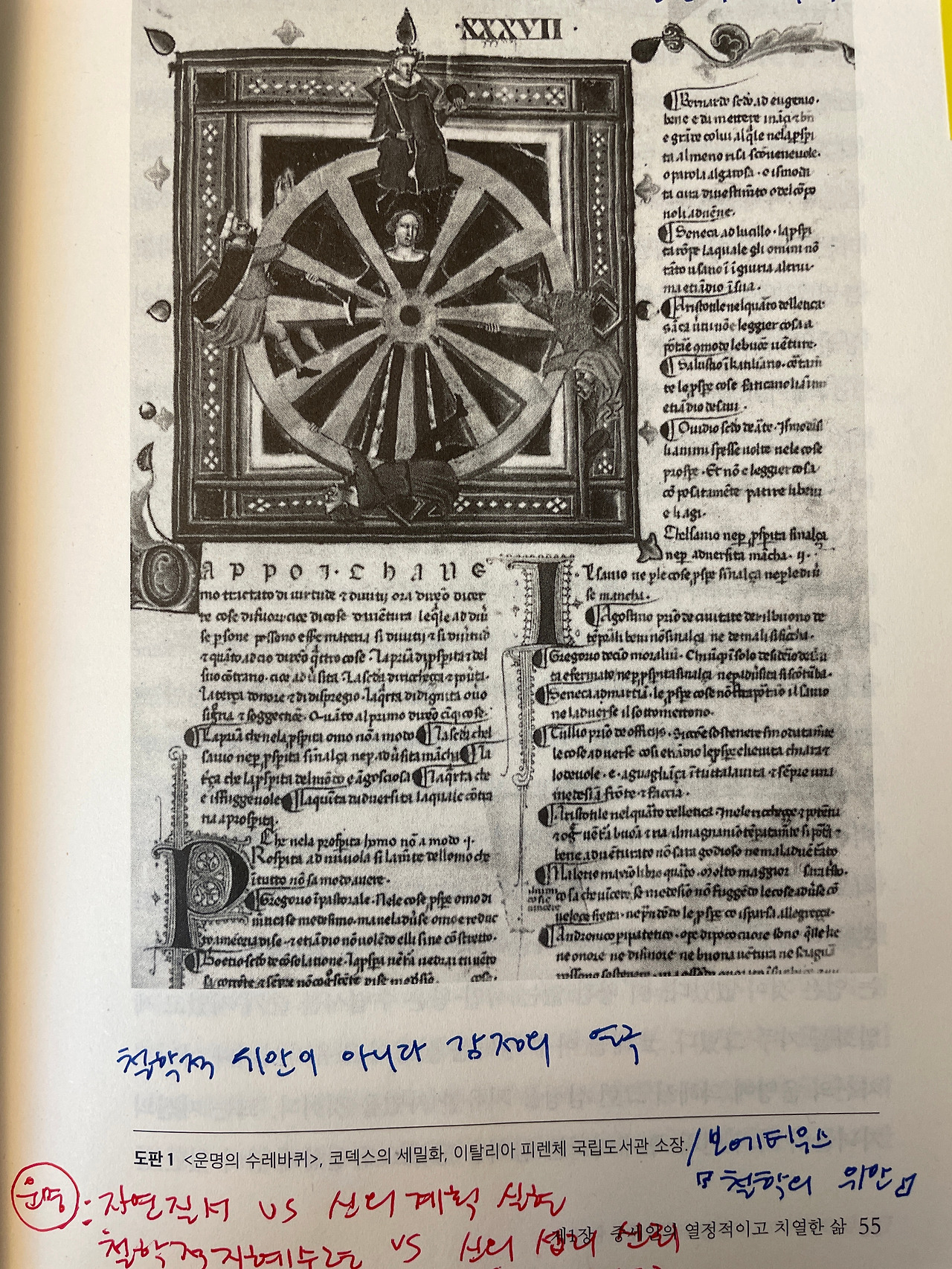 열정적이고 난폭한데 눈물을 자주 흘리는 경향이 있었던 중세 사람들의 성향. 어쩌면 툭하면 우는 나 같은 사람에겐 이런 정서적인 부분에선 중세 사람들에게 깊은 공감을 느끼지 않을까 하는 생각도 들었다. 혜진쌤의 특별한 과외(?) 덕분에 어렵게만 느껴졌던 책이 하나씩 베일이 벗겨지는 기분이 들었다. <운명의 수레바퀴>에 대해선 고대와 중세인들은 전혀 다른 각각의 해석이 있었다고 한다. 뭐 이것도 후에 생긴 역사적 편견이라 해도 서로 다른 방식으로 세상을 바라보고 그럼에도 역사가 이어져 왔다는 사실이 그저 신기하고 놀랍다.