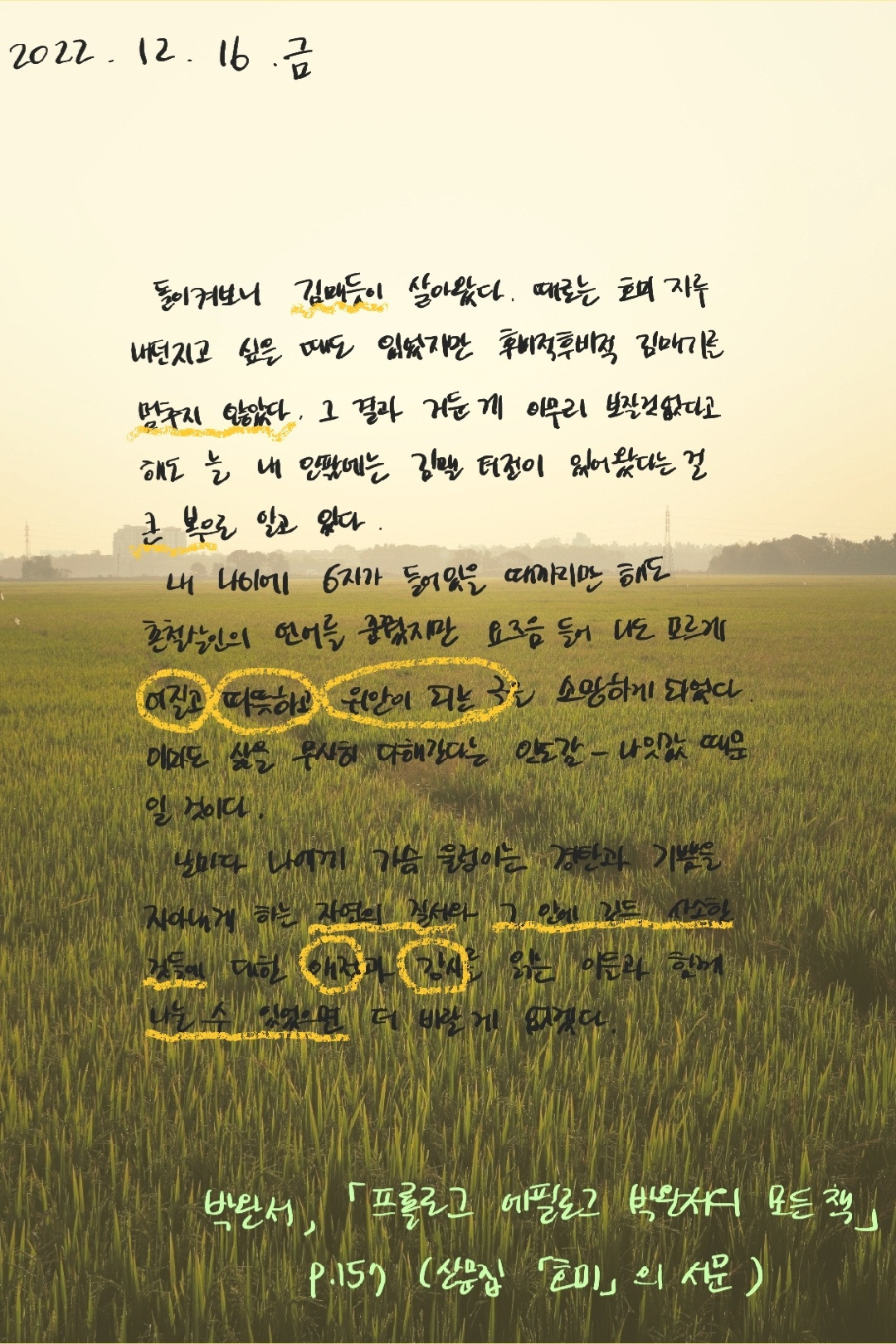→ 누군가의 좋은 글을 따라 쓰는 작은 과정에서도, 함께 책을 읽기로 마음먹은 순간에도.