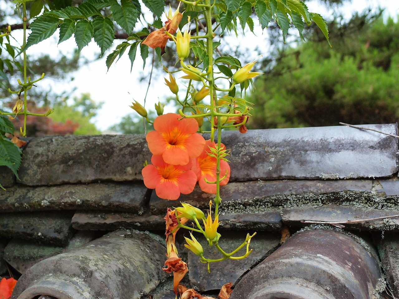 개인 정원에 이끼가 돋아나고