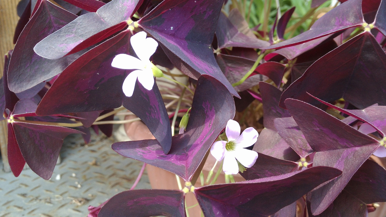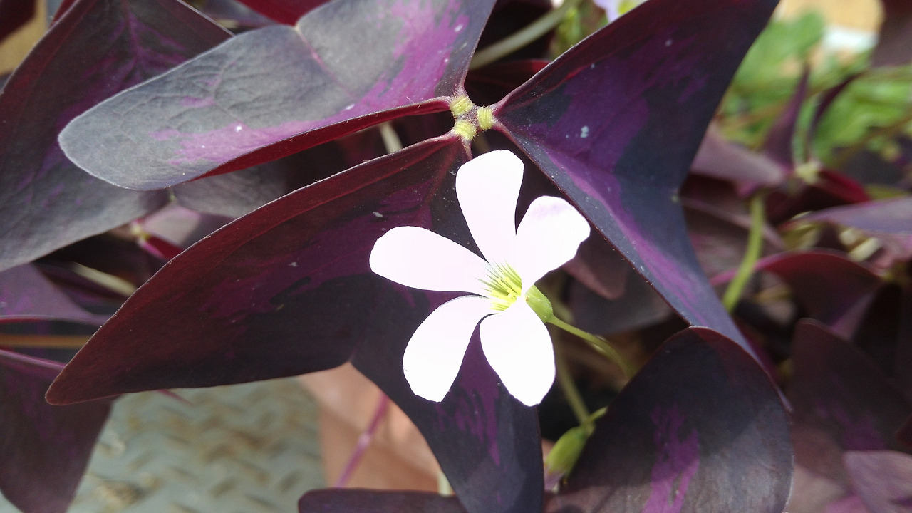 창가에 보라색 잎사귀를 가진 녀석이 꽃을 피웠다. 잎사귀 몇 아니었는데 어느덧 무성하게 자라서 꽃을 피웠다.