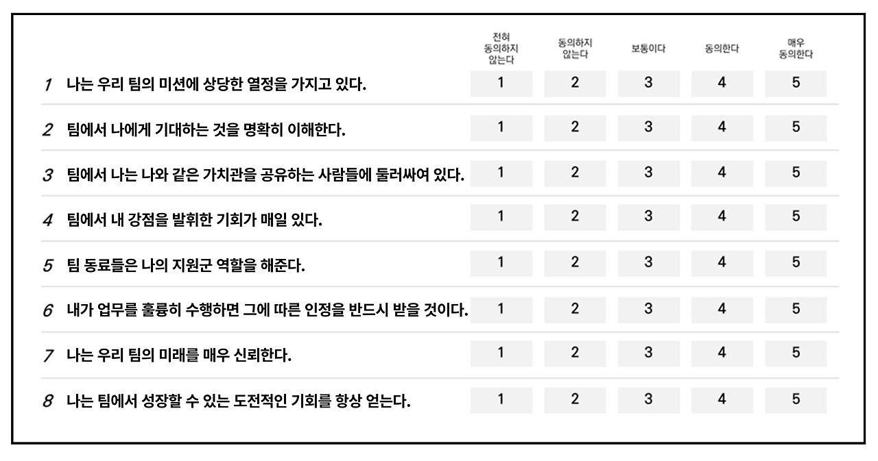 <보이지 않는 팀의 힘>이라는 약식 서베이도 있다.