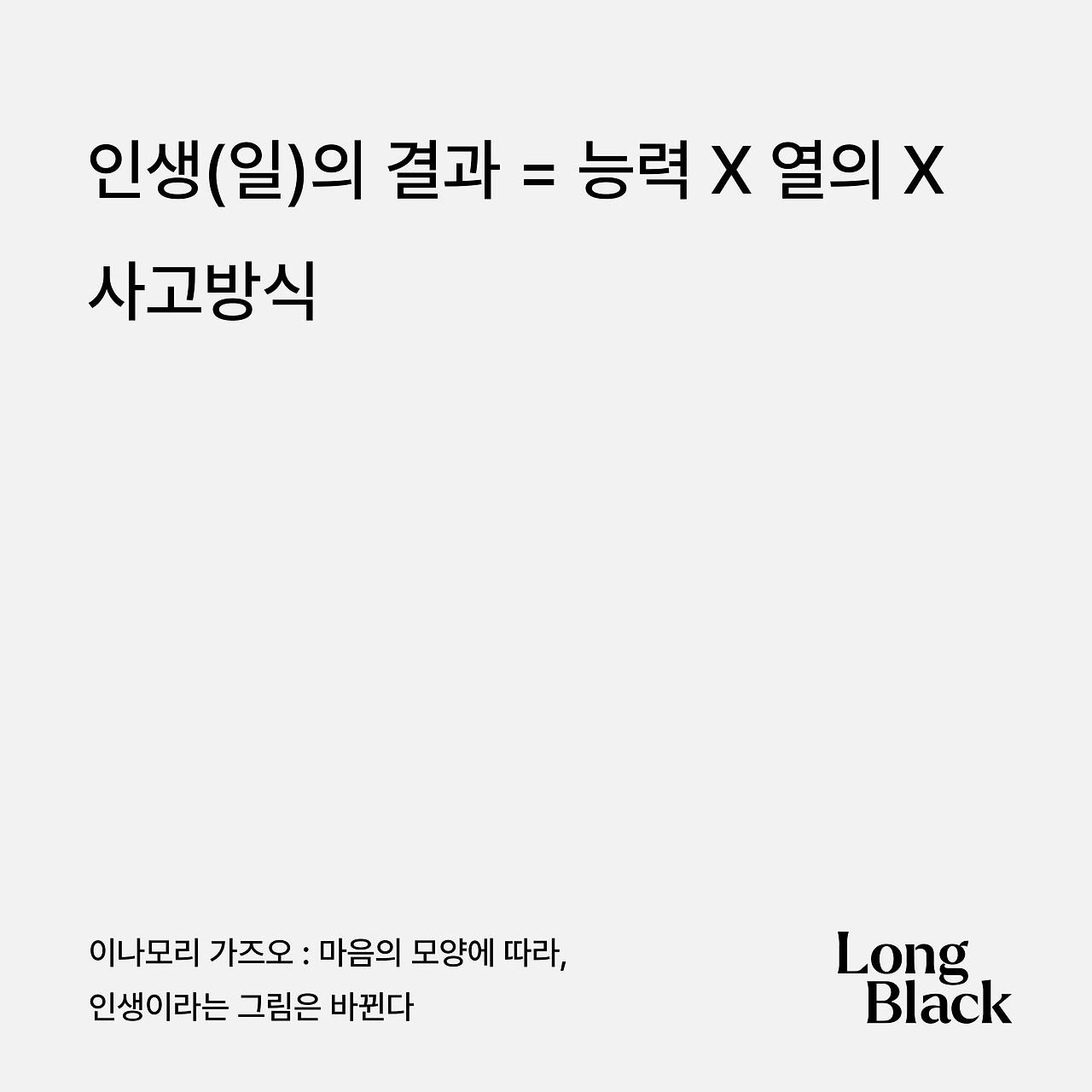 모든 일의 결과는 [능력], [열의], [사고방식]의 곱으로 만들어진다는 인생 방정식.