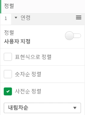 연령의 정렬을 ‘오름차순’에서 ‘내림차순’으로 변경합니다.
