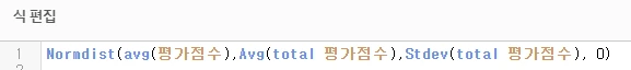 각 구간 안의 평가점수의 평균을 기준으로 분포를 계산하여 정규분포로 나타내는 수식입니다.
