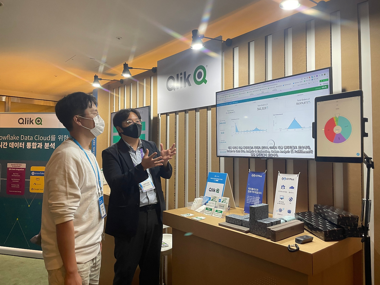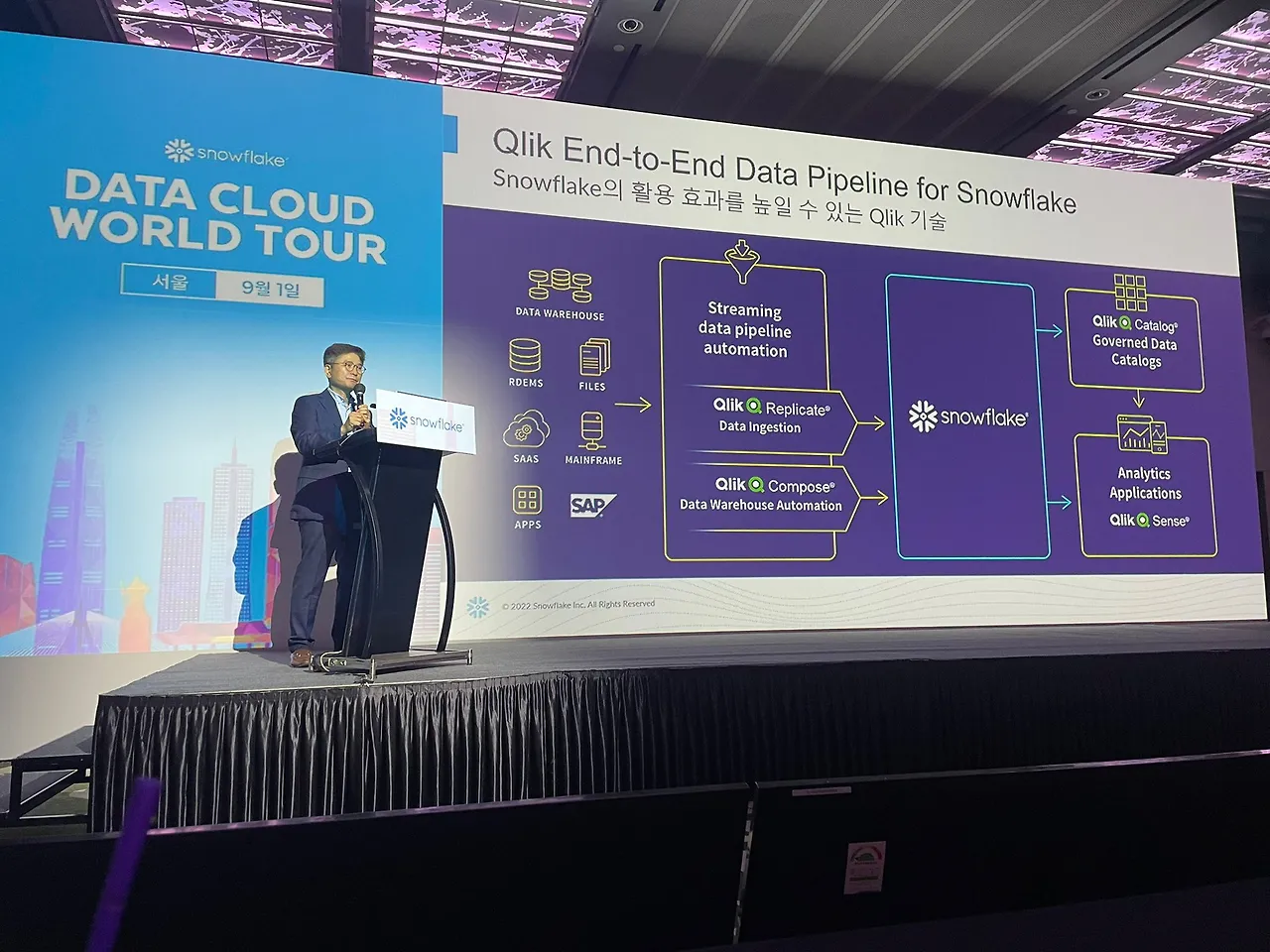 메인 파트너사인 데이터 통합 및 분석 솔루션 클릭(Qlik)은 '실시간 데이터 클라우드 통합, 변환 및 데이터 웨어하우스 자동화'라는 주제로 스노우플레이크 데이터 클라우드를 위한 실시간 데이터 통합과 분석을 소개했습니다.