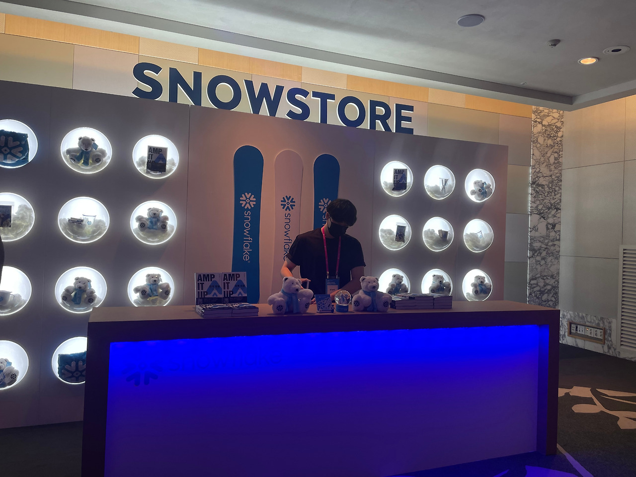 클릭 부스 외에도 아마존(aws), 메가존(megazone) 부스도 만나볼 수 있어서 기업의 데이터 담당자들의 궁금증을 다양하게 해소할 수 있었던 것 같습니다. 또한 이 날 행사는 오랜만의 오프라인 행사인 만큼 스노우플레이크의 마스코트 북극곰과 사진 찍기부터 코인 인형 뽑기, 부스 투어 이벤트 등 밝고 유쾌한 분위기에서 진행되었습니다. 저희는 부스 투어로 5개의 스탬프를 받아 굿즈도 받고 선착순 200명에게 제공된 <AMP IT UP, 한계없음>도 겟했답니다!