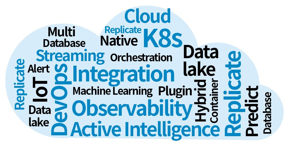 Cloud, Integration, Multi, Hybrid, Observability, Replicate, K8s, Container, Orchestration, Native, Data Source, DevOps, Alert, Machine Learning, Predict, Active Intelligence, Database, Streaming, IoT, Data lake, Plugin, MSA