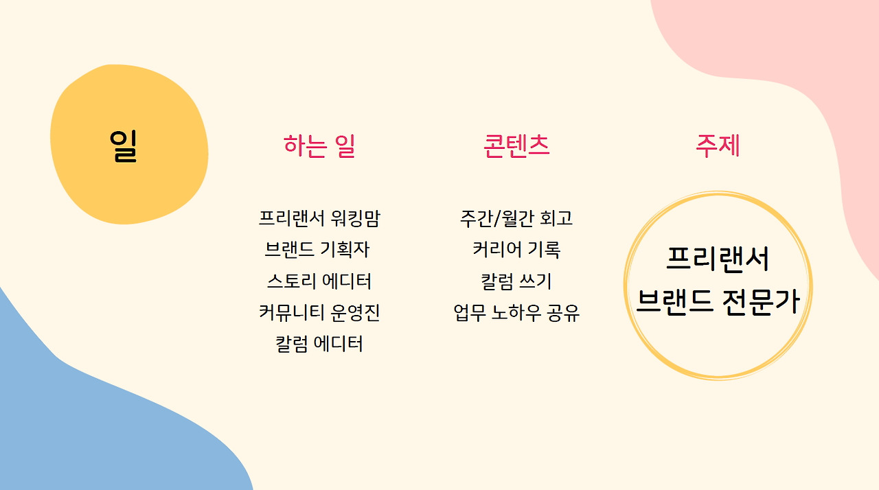 그동안 브런치며 페이스북이며 인스타며.. 뭐라도 적어온 덕분인지, 나에게도 'N잡'과 '퍼스널 브랜딩'이라는 단어로 이야기할 기회가 생겼다. 예전의 나라면 '제가.. 왜..?'라며 의문을 표했겠지만, 이제는 아니다. 무조건 YES. 내가 엄청 대단해서가 아니라, 나 같은 사람도 있다고 말하고 싶어서이다. 우리에게는 롤모델도 필요하지만, 정작 실무 할 때는 케이스 스터디나 레퍼런스가 더 와닿는 것처럼 말이다.