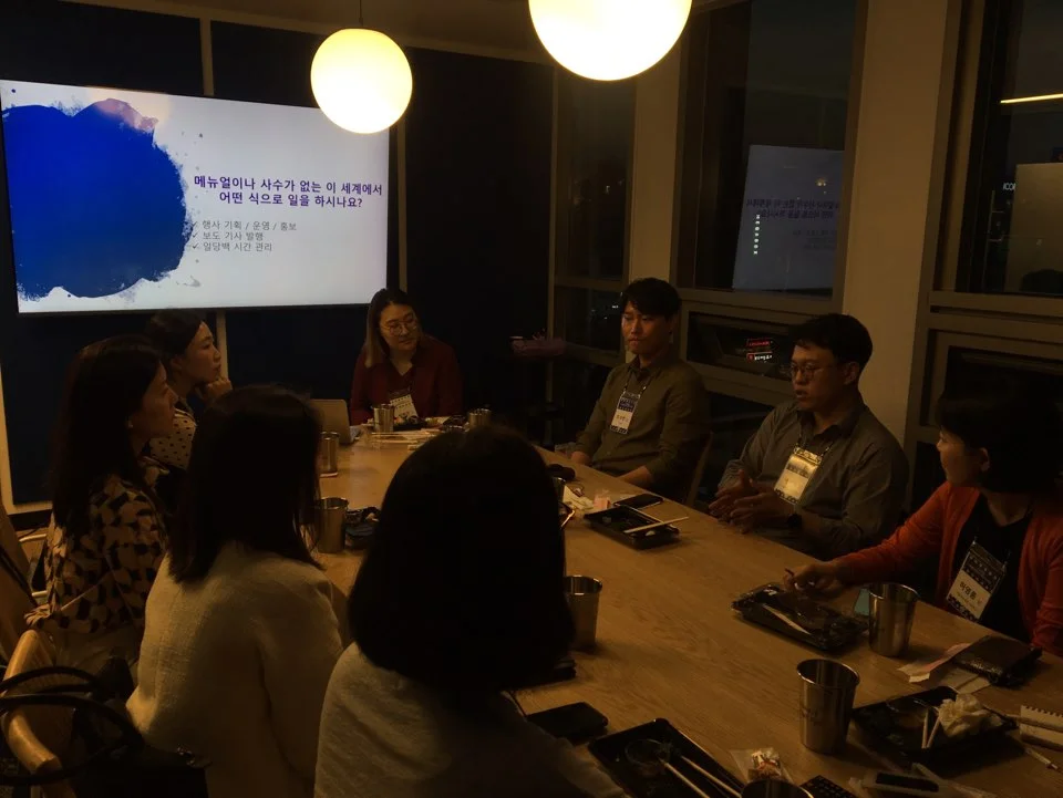 사실 이건 액셀러레이터 기관뿐만 아니라 작은 규모의 조직에서 일하는 직장인이라면 모두 겪는 고민이기도 한데, 스타트업을 지원하는 같은 업을 하는 사람들만의 노하우를 공유할 수 있지 않을까 싶었다. 매뉴얼이 없기에 매뉴얼을 직접 만드셔서 아예 OJT 교육을 진행하거나 동종 업계의 매니저를 위한 강의를 진행하는 분이 계셨는데.. 들으면서 감탄만 계속했다. 본 업도 바빠서 허덕이는데 이직률이 높은 이 쪽 생태계의 특성을 잘 이해하셔서 다음 분을 위해 매뉴얼을 만들어 놓는 그 열정과 프로다움에 뜨거운 박수를 보내고 싶었다. 이 외에도 효율적인 업무를 위한 다양한 업무 툴도 서로 공유를 하였는데, 그중 한번 써보고 싶었던 건 #SWIT이었다. 한국 스타트업인데 본사는 실리콘 밸리에 있다고 하는 트렐로와 슬랙의 블렌딩 버전이라고 하여 혹! 했다. 그리고 #인사쟁이 라는 전통 있는(?) 네이버 카페에 대해서도 알짜정보를 듣고 이 모임에서 얻을 건 오늘 확실하게 얻었다! 싶었다. (ㅋㅋㅋ)