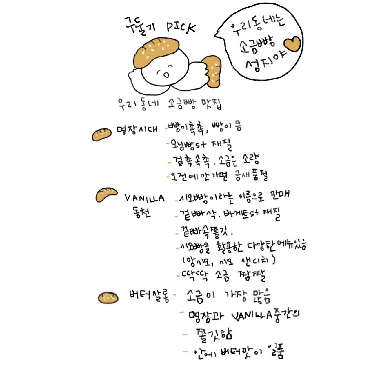 ‘오히려 좋아’를 속으로 외친 채, 빵집을 나와 총총 걸으면 어느 덧 차가워진 아침 공기에 소금빵을 싼 비닐에 뽀얀 김이 서린다.