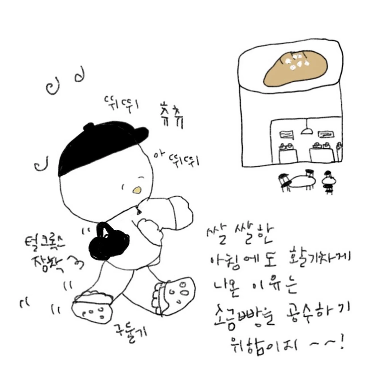 아침 일찍 혁이씨의 밥을 차려주고, 나의 업무 시작 전 잠시 여유가 있을 때 들른 집 근처 빵집에 들른다.