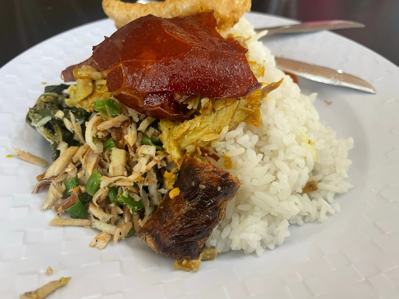우붓에서의 일정을 마치고, 바닷가 지역인 쿠타로 다시 향하기로 했다. 그냥 가면 아쉬우니 택시를 하루 대절해서 내려가는 길에 주변 유명 관광지들을 둘러보기로 했다. 아침과 점심 메뉴를 택시 기사분에게 추천을 받는다는 전통적인 맛집 탐색 방법을 사용했는데 이 메뉴 선정 방법은 실패했다. 발리에서 유명한 바비 굴링 babi guling이라는 음식이 있다. 돼지 통구이 바비큐인데 한 마리씩 주문하는 것은 아니고, 식당에서 주문하면 바비큐를 부위별로 조금씩 썰어다가 소스와 함께 밥 위에 얹어서 덮밥으로 내어준다. 이날 아침으로 이 메뉴를 먹기로 하고, 아침에 택시 기사분께 바비 굴링을 파는 곳으로 데려가 달라고 했다. 나는 택시 기사에게 ‘음식점을 추천해 달라’라고 말하는 것은, 말 그대로 ‘아무 음식점이나 데려다 달라’라는 뜻이 아니라 ‘택시 기사 당신 만의 맛집, 혹은 유명한 음식점으로 데려가 달라’라는 뜻이라고 당연하게 생각했다. 그렇지만 택시 기사는 전자의 의미로 생각한 것이다. 그가 데려간 곳은 구글 맵에도 없고 간판도 없는 어느 길가의 식당이었다. 한화 약 2000원의 저렴한 가격이었다. 정말이지 말 그대로 주변의 바비 굴링을 파는 아무 식당이었다. 고명이 상대적으로 적어 소스와 밥을 먹어야 하는 저렴한 가격에 맞는 음식이었다. ‘그래, 현지인들에게 바비 굴링이라는 음식은 이런 느낌이구나. 고기가 가득 올라가 있는 버전은 부유한 관광객 대상 음식이겠지.’ 하는 생각을 하며 생각보다는 맛있게 먹었다. 지혜는 느낌이 다른 듯했다. 이 짧은 여행에서 한 끼를 먹어도 제대로 먹어야 하는데, 이렇게 밥으로만 배를 채우는 것이 아깝다는 평가를 했다.