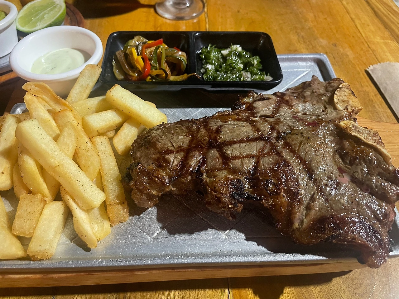 세계 어디를 가든 가장 쉽게 찾을 수 있는 고기는 소고기, 돼지고기, 닭고기다. 콜롬비아도 마찬가지로 그 세 종류의 고기를 즐겨 먹는다. 가격도 아주 저렴하다. 닭, 돼지는 물론 심지어 소고기도 마트나 정육점에서 100g당 1000원 근처에서 쉽게 구할 수 있다. 소고기가 그렇게 싸다면 매일 소고기를 먹는 것이 이득 아니냐고? 절반은 맞다. 만약 맛있게 요리하기 위한 적절한 도구와 실력을 가지고 있다면 말이다. 콜롬비아의 소고기는 한국보다 질기고 육향이 강하다. 코스트코에서 파는 미국산 소고기(중 기름 없는 부위)와 비슷하다. 스테이크용 부위를 사서 몇 번 구워 먹어 보기도 하고, 소갈빗살로 요리를 해보기도 했는데 숙성을 하지 않고 먹기에는 꽤 질겼다. 요리할 만한 여건이 안 된다면 밖에서 Parrilla (그릴) 나 Asado(구이)라고 쓰여 있는 식당 중 리뷰가 좋은 곳을 방문하는 것을 추천한다. 소고기 스테이크를 충분히 싸게 즐길 수 있다. 씹는 맛과 진한 육향을 즐긴다면 좋은 선택이다.