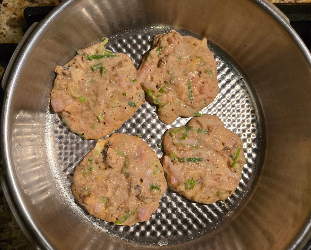 기름에 바삭하게 구워지며 고소한 냄새를 풍기는 빈대떡 생각이 난다. 오늘 아침부터 비가 내리는 날이라서 그런 모양이다. 녹두를 꺼냈다. 따뜻한 물을 부어 속성으로 불린 다음 믹서기에 갈았다. 녹두 간 것에 급한 대로 배추 나박김치 담아 놓은 것을 꺼냈다. 한 번 더 썰어가지고 큰 그릇에 담았다. 냉장고에 있는 파, 버섯 꺼내고 양파도 가져와서 씻어 가지고 썰어 넣었다. 돼지고기 넣으면 더 맛있겠지만, 나는 황태채를 물에 적셨다가 잘라 넣었다. 껍질도 있기에 좀 불려 넣었다. 녹두 빈대떡 만들 때 쌀가루도 조금 넣어야 반죽이 잘 어우러진다. 계란도 하나 깨 넣었다. 소금 한 꼬집도 넣어 준다. 여기에 팁이 있다. 참기름 한 숟갈 넣고 조물조물 버무려 준 다음에 물을 조금씩 부어 되직하게 반죽한다.