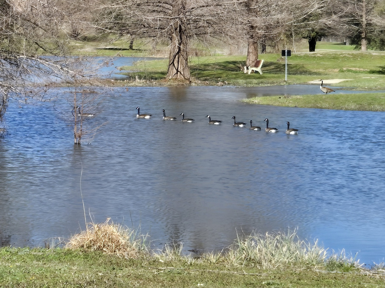 물론 이런 행동의 변화 외에도 매일 걷기를 하여서 얻어진 것들은 많다. 현재 사는 곳에는 잘 가꿔진 산책길이 조성되어 있어서 좋다. 원래는 골프장이었던 곳이다. 나무도 많고 호수도 4곳이나 되며 여러 코스로 선택해서 걸을 수가 있다. 급할 때는 동네 가까운 짧은 코스로 택한다. 호수를 지나는 중간 코스, 큰 호수를 낀 먼 코스로 나뉘어 있어서 그날 상황에 맞게 선택할 수 있어서 좋다. 나는 대개 동네를 거쳐 공원 길로 접어든다. 풀밭을 가로질러 호수가 있는 중간길을 택해서 걷는다.