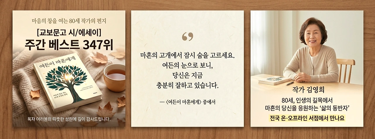 예판 중인데 교보문고에서 시, 에세이 부문 주간베스트 347위에 올라 있습니다.