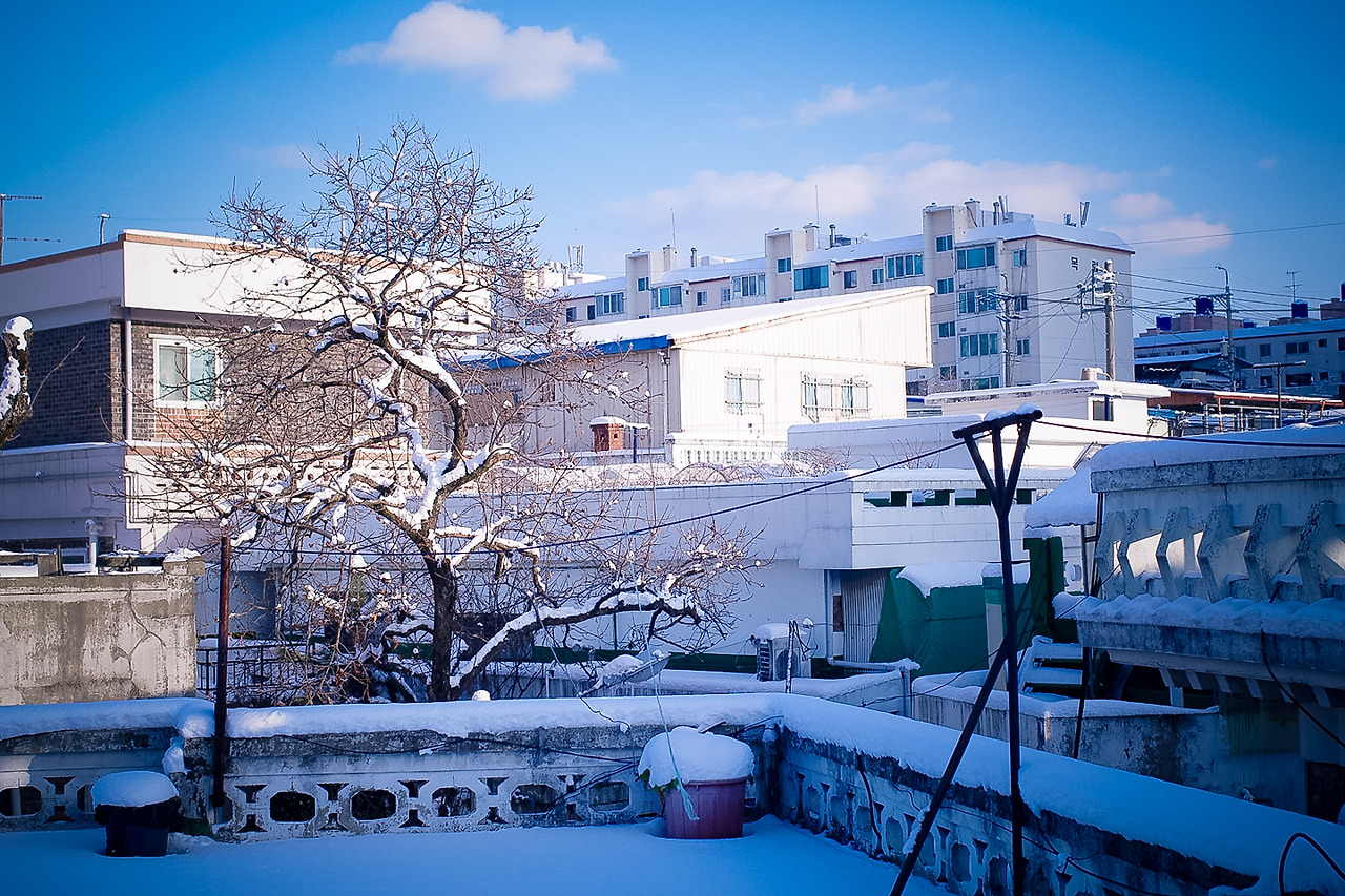 처마, 장독, 가녀린 잔가지, 돌담 자신들을 붙들어 맬 수 있는 곳이면 어디라도 서로를 부여잡았다.
